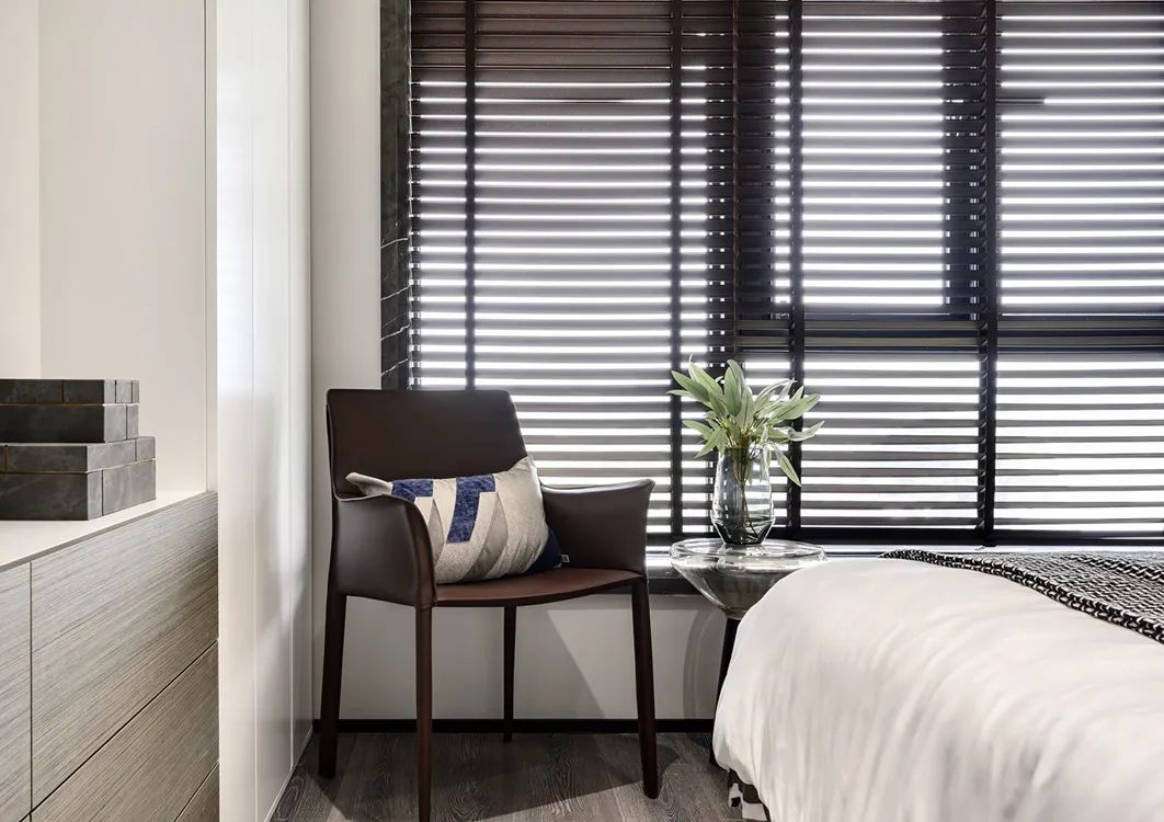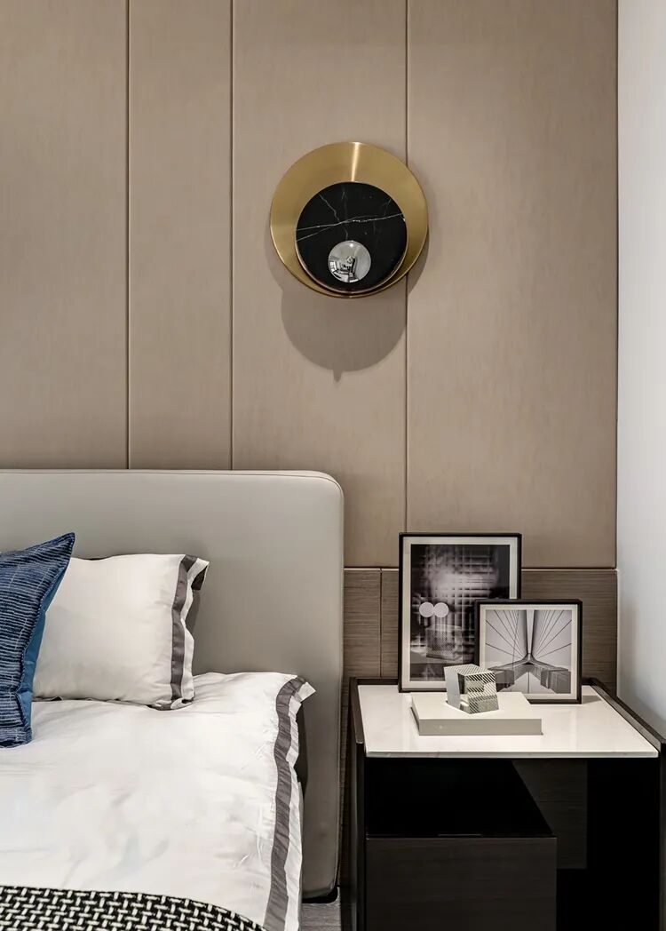 ▲床尾角落的休闲椅 ,床头柜的小装饰,床头墙的轻奢壁灯,处处细节都为主人展示着雅致端庄的生活品质。