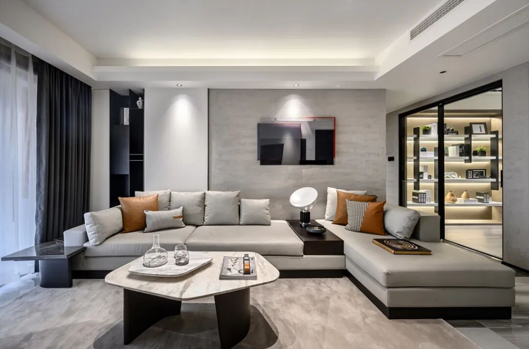 ▲进入空间后,整体现代舒适的空间,正以静谧雅致的姿态迎接着主人的归来。