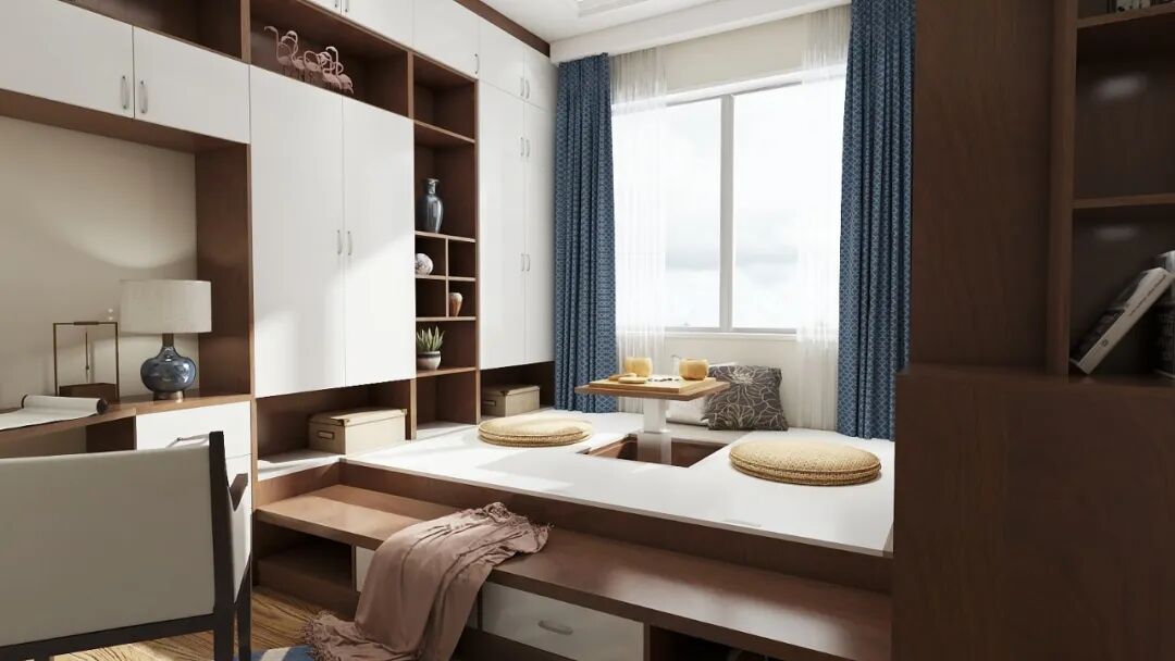 书房卧榻是常见的设计之一,拓展书房单一空间,增加居室收纳空间,临窗设计最是舒适宜人。