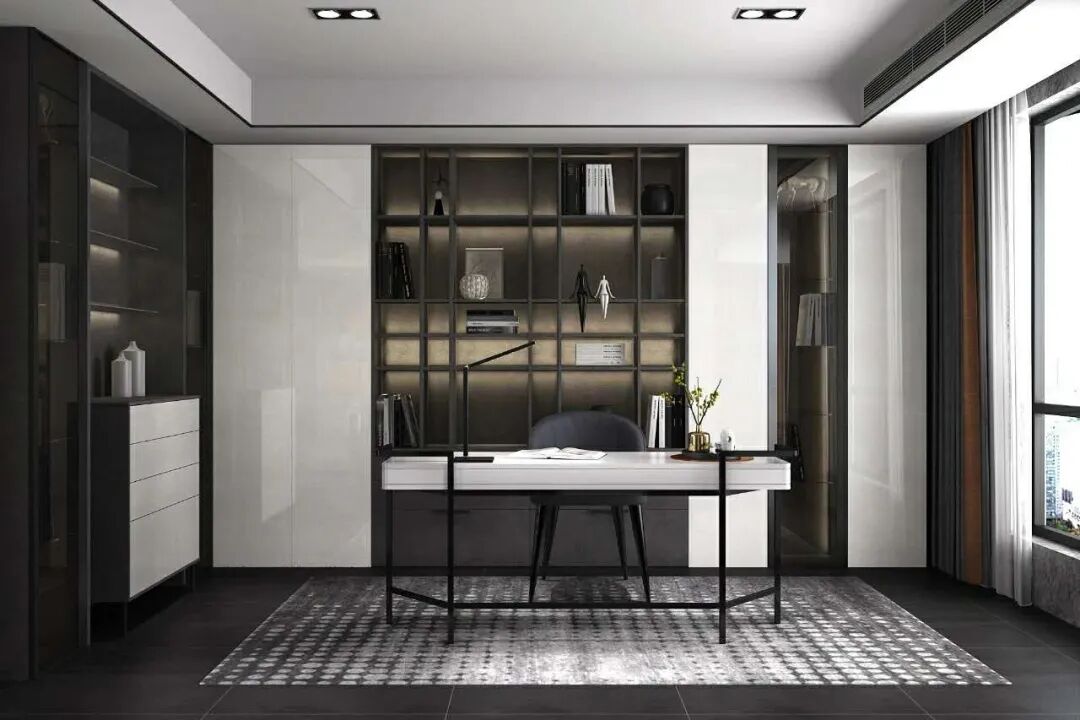 意式轻奢书房注重简洁,但也并不像一般的简约风格那样随意,看似简洁朴素的外表之下,却常常折射出一种隐藏的贵族气质,所以又给人时尚前卫、气质优雅,且不失温馨舒适的感觉。