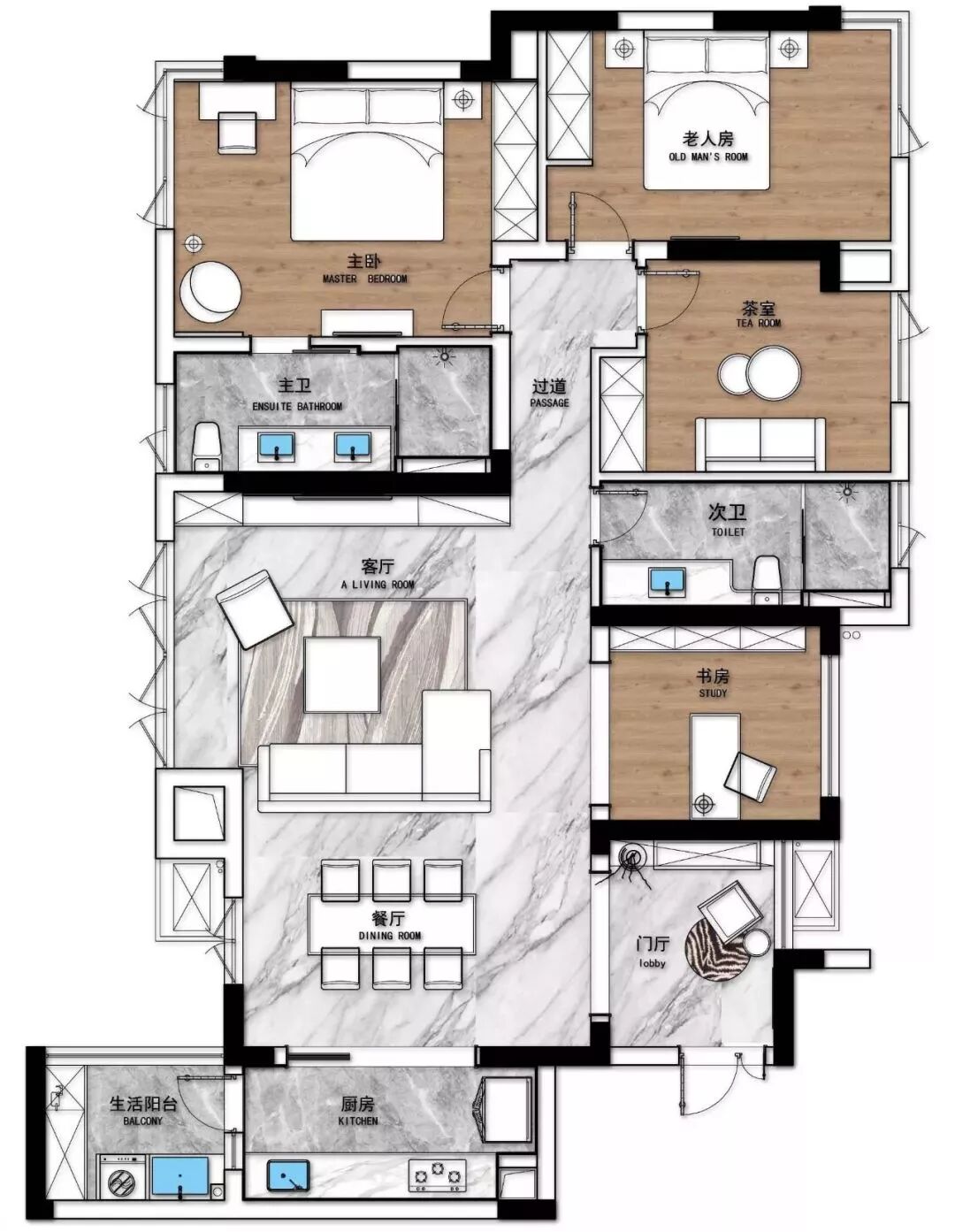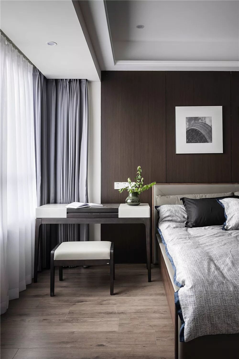 一个人的气质里,藏着他读过的书,走过的路。正如我们这次的业主,有品位、注重细节,经常出差的他特别喜欢酒店的精致现代风格。所以在正常满足房间需求的情况下,整体风格颜色材质的把控与搭配成为了本案的设计重点。