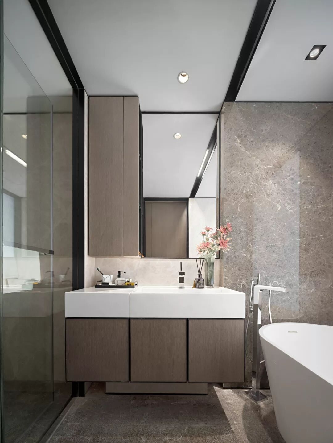 客餐厅采用了无形分隔的处理手法,通过线条与体块的交织构成,勾勒出空间的立体层次,摒弃冗杂的装饰,极尽克制内敛的品格。