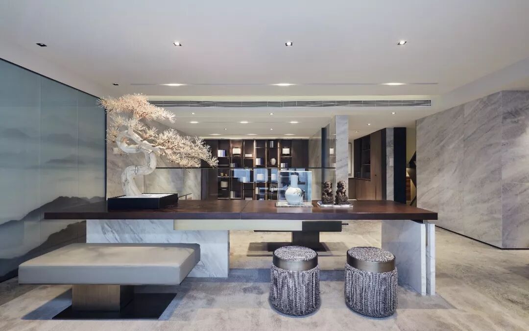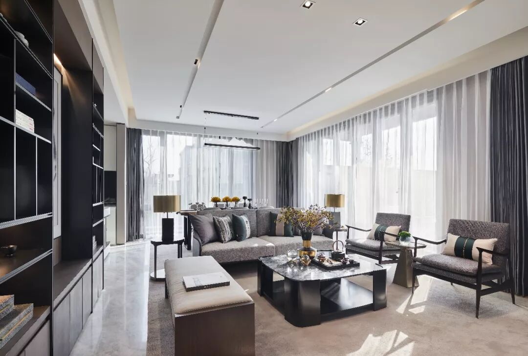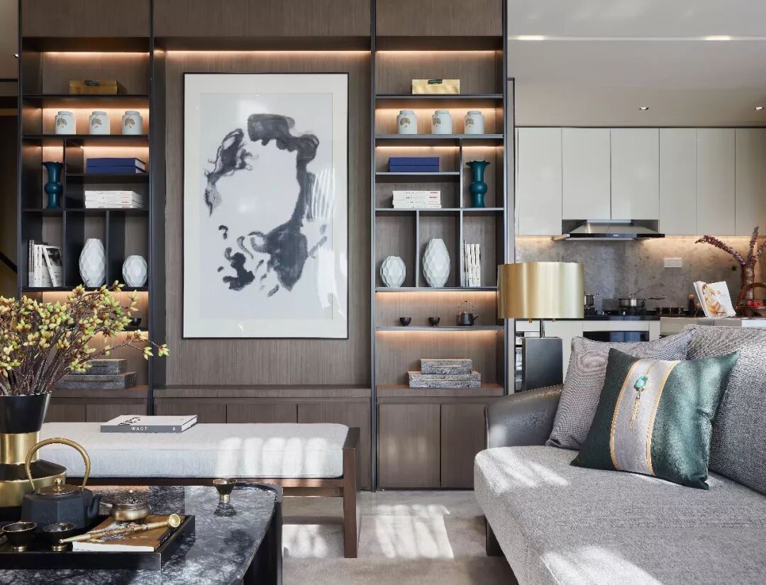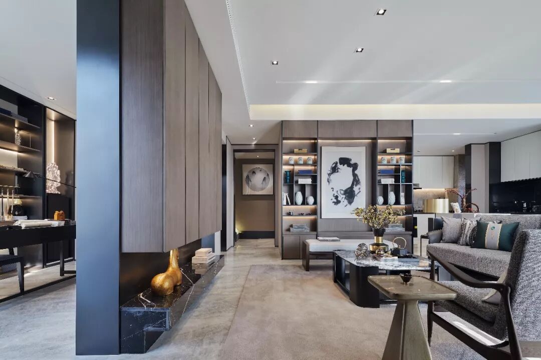 用现代气质营造意境,让空间显得更通透旷达,配合整体的深色调,更显沉稳大气,犹如一副泼墨的山水画,给人飘逸的东方韵味。