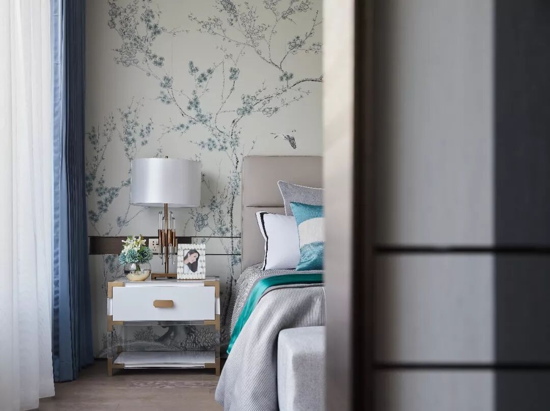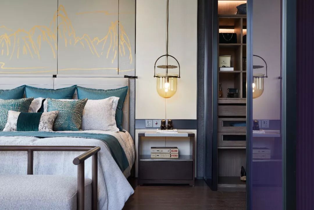 卧室的色调大部分为莫兰迪色调,墙壁是古韵的画卷,地板是木质的纯然,丰富的色彩插入点缀了浅色空间,心思细腻,从容儒雅。