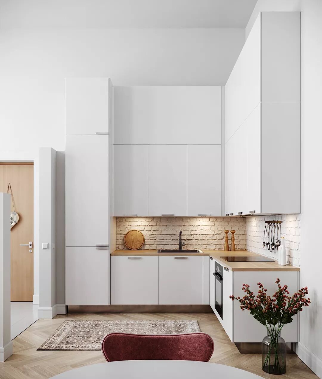 L型厨房需要较多橱柜,增强收纳能力