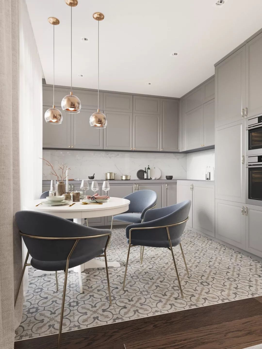 在L型厨房中设置早餐桌,