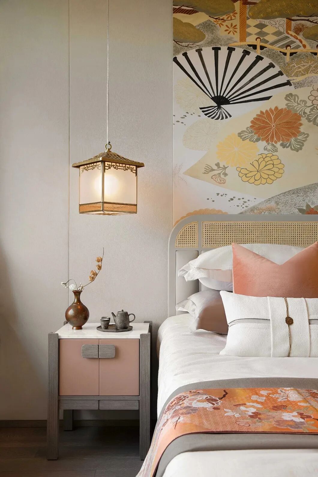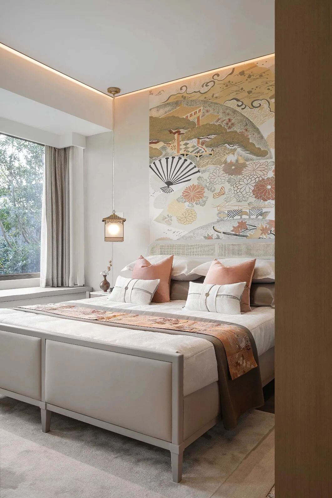 点睛之笔的壁画和床塔呼应了浮世绘的艳丽与风情,游跃灵动,满布欢喜。