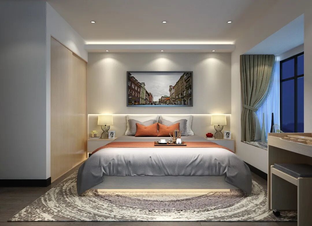 或是床头顶部放置灯带,能够替代或配合床头灯,营造出不一样的视觉效果和空间氛围。在夜晚,它是关掉主灯、渲染情调的利器,赋予卧室一份浪漫情愫。
