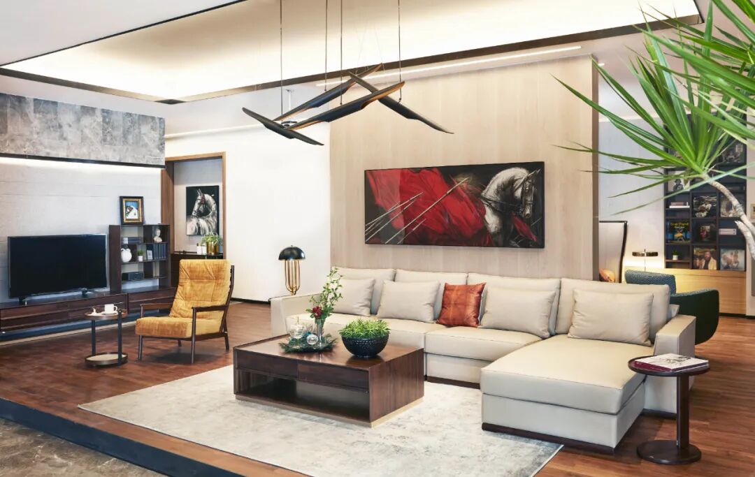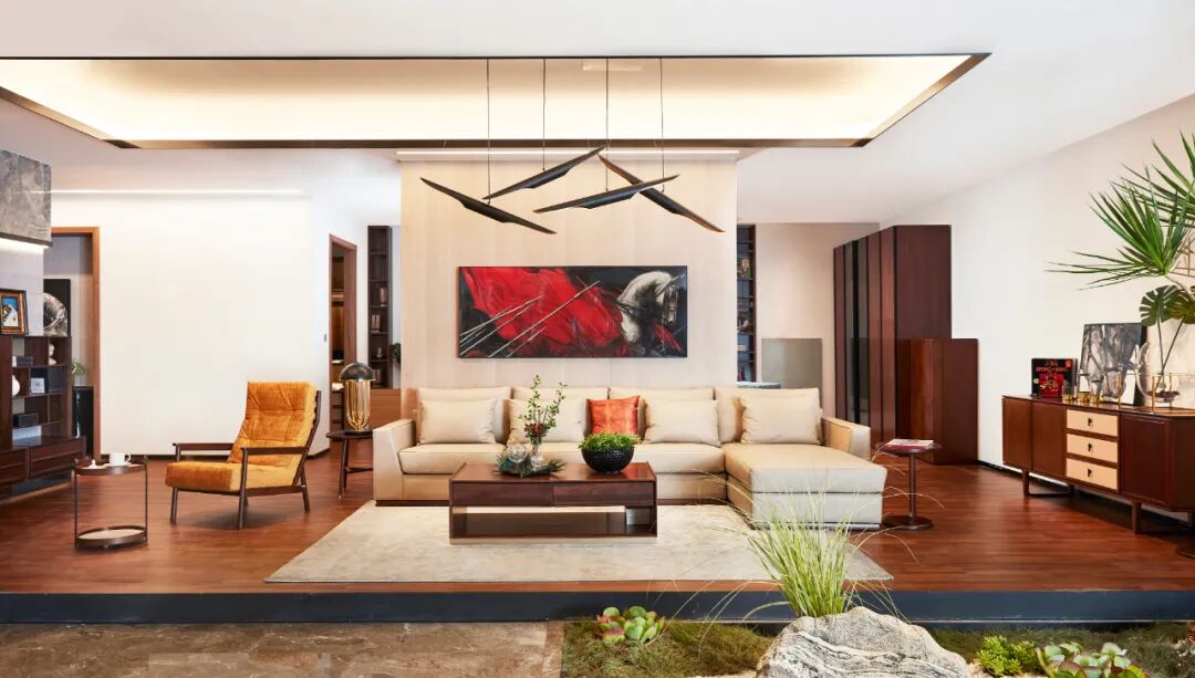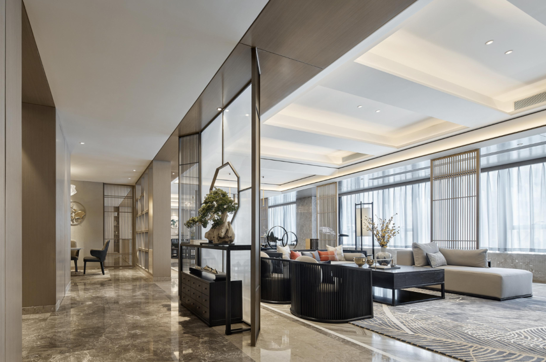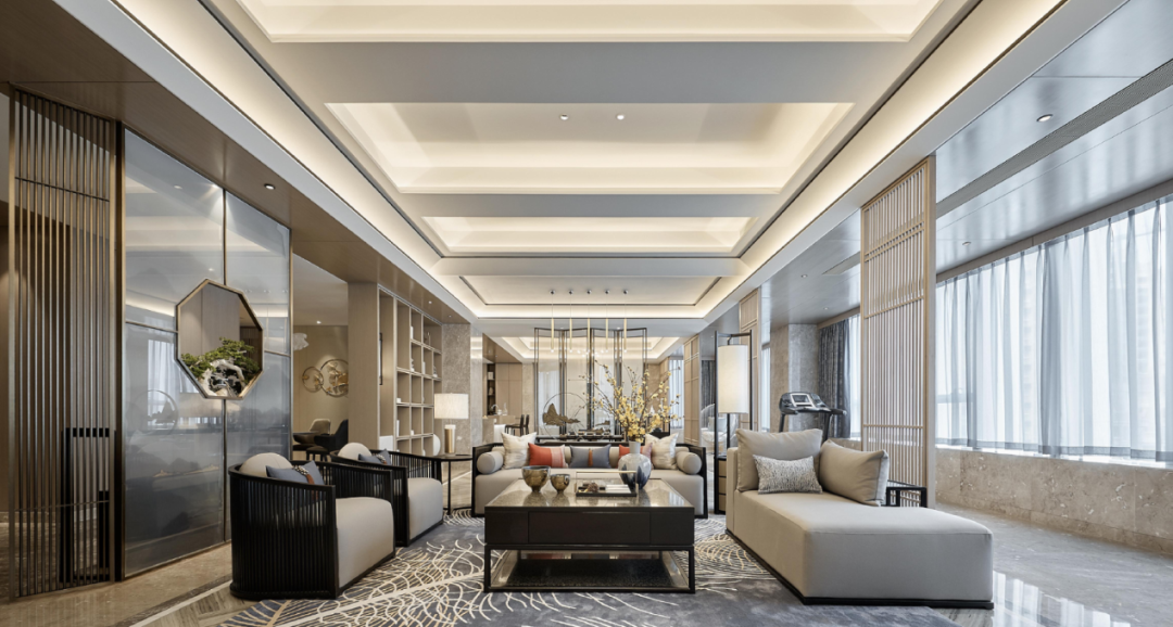 在万物系列打造的新中式雅宅里,吊顶灯带的加入,令空间更加通透空明雅致,凸显出奢阔大宅那种非凡大气的格局。