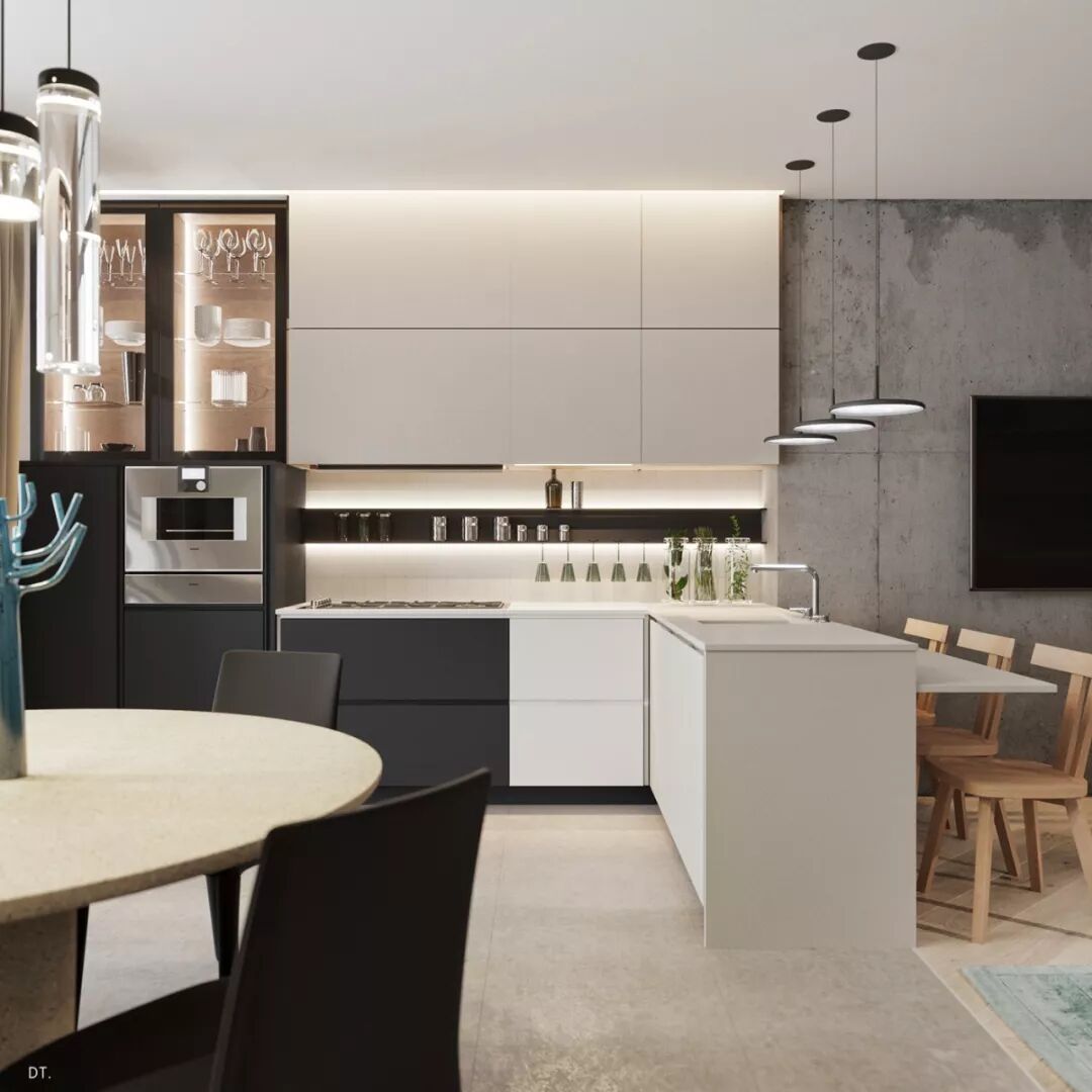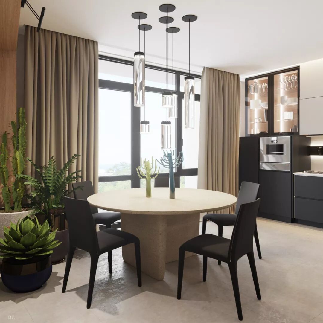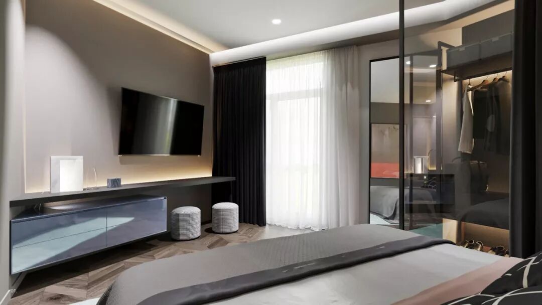 点缀着金属质感与黑玻璃质感的家具,空间显得层次丰富更高档。