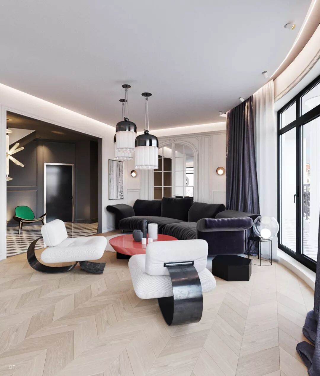 原始版的设计在色彩上更为跳跃,在黑白为基调下的空间,大胆地选用黄色、绿水、红色,鲜艳的对比色在黑白色调下空间显得时尚前卫,充满活力感。