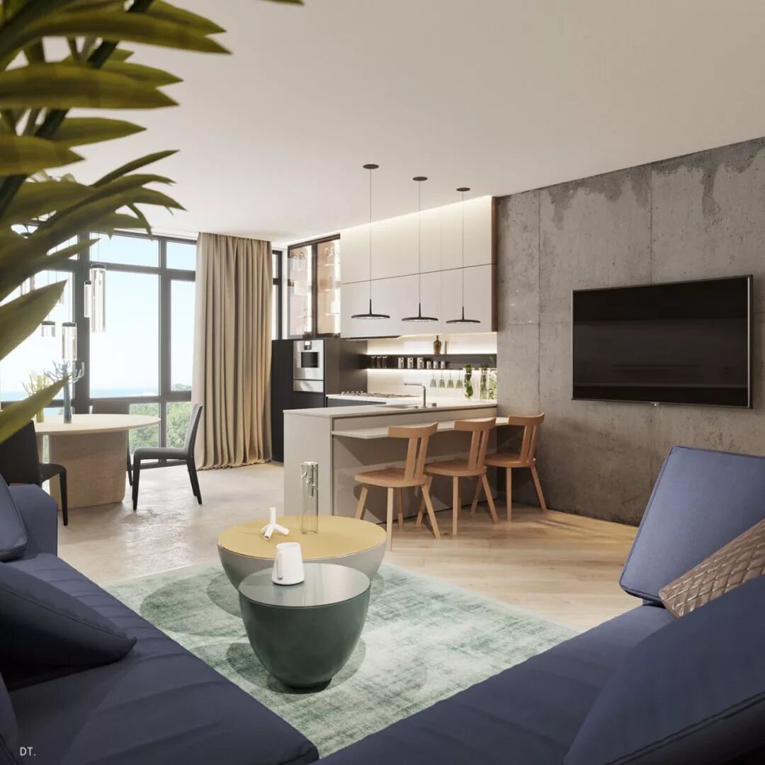 在以低彩度大地色为主的室内,采用混凝土地板和金属元素,在日光陪衬下烘托出高级质感。
