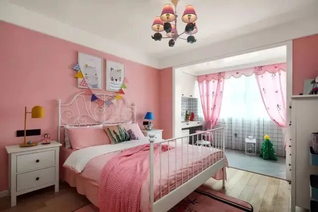 由于家里的宝宝是个小女孩,儿童房的颜色比较活泼,小阳台利用得很好,改造成了一个小书房,也是一个玩耍的小天地。