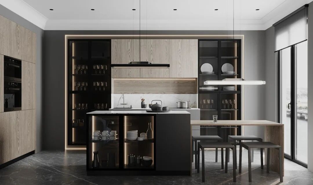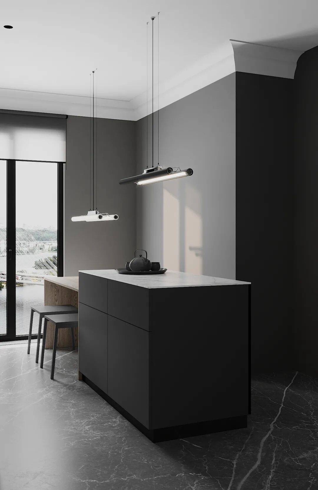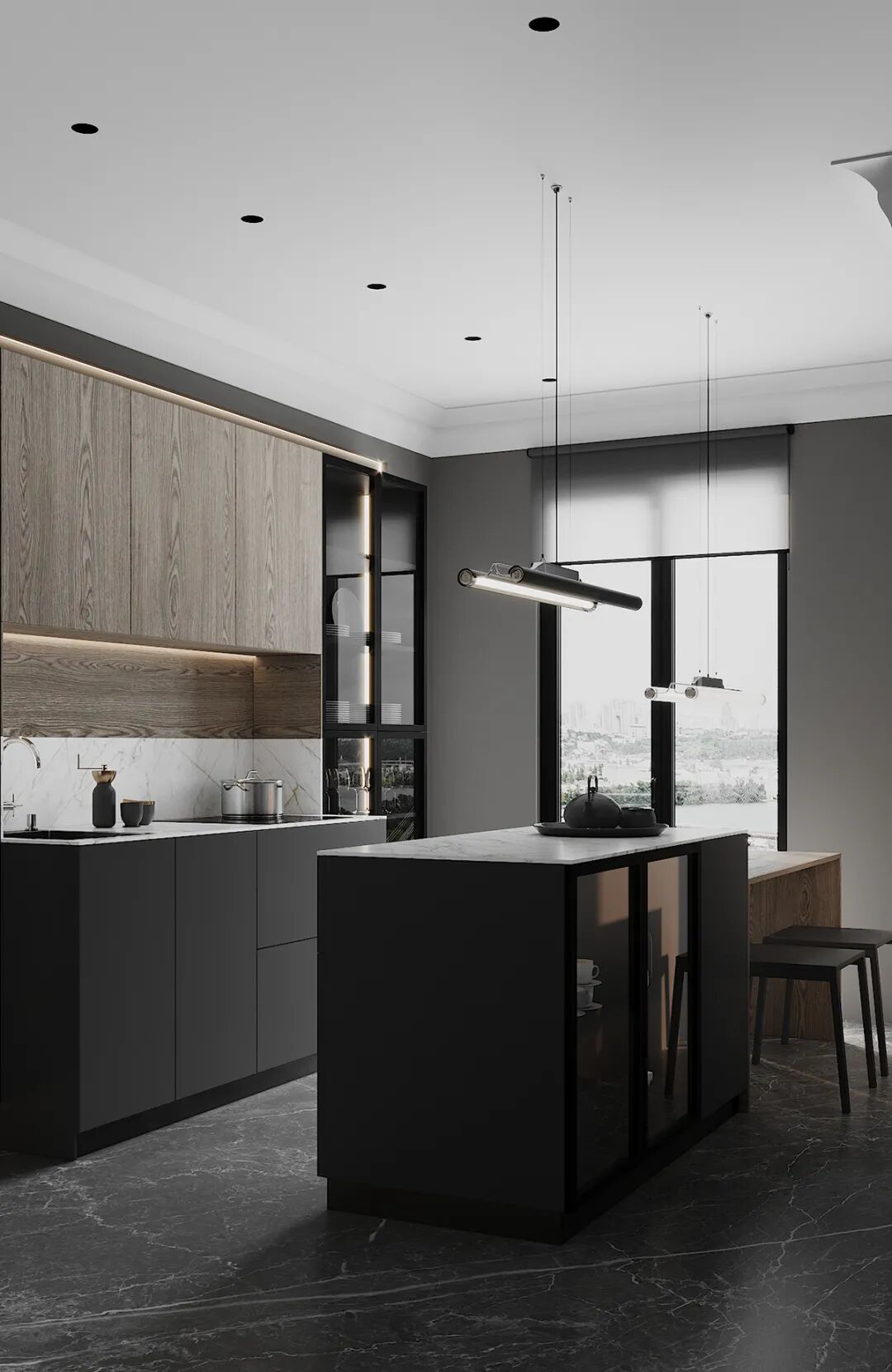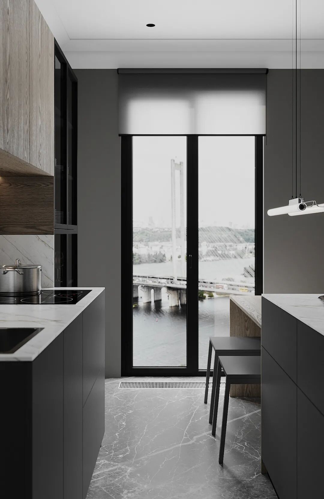 设计师认为厨房是空间的构成中心,如果厨房设计好了,其他所有东西就容易多了。这个厨的纹理和色彩很吸引人,设计令人着迷,细节之处一丝不苟,以此来演绎具有底蕴的美学理念。