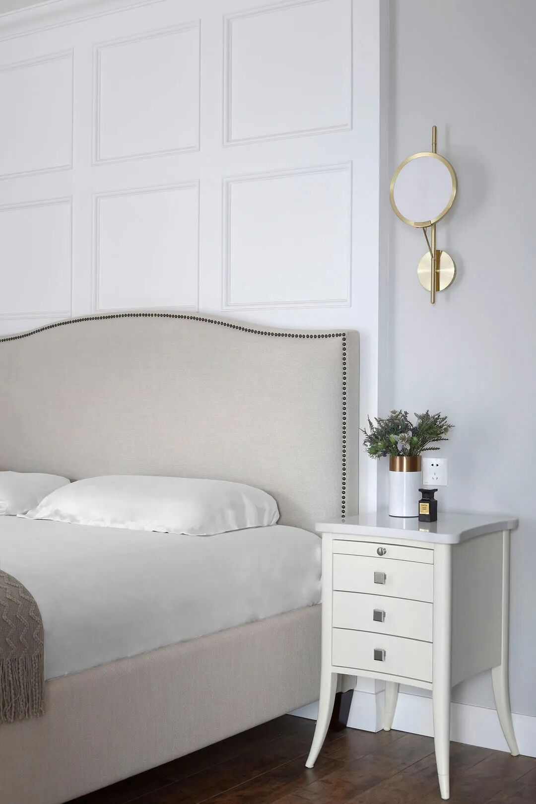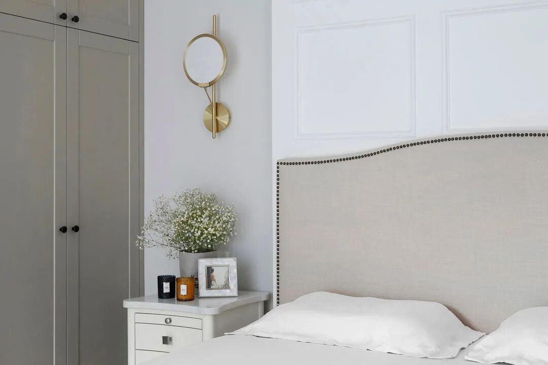 单体衣帽间很多人想要,但如果房子面积不是很大,不建议做其实很浪费面积。靠墙的大衣柜储物量不输且颜值更高,还可以解放一定面积给其他功能,比如梳妆台,梳妆选衣一次性完成。卡其色的柜门比白色更不易显黄旧,品质感也更高。