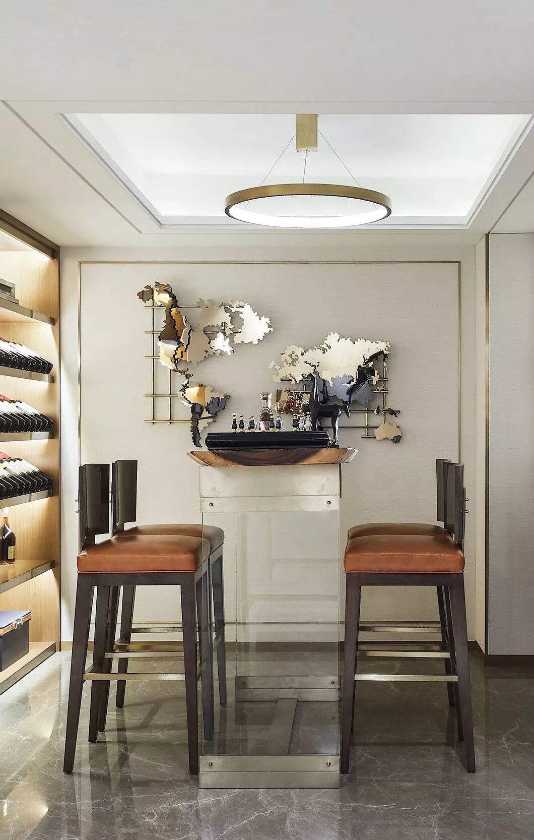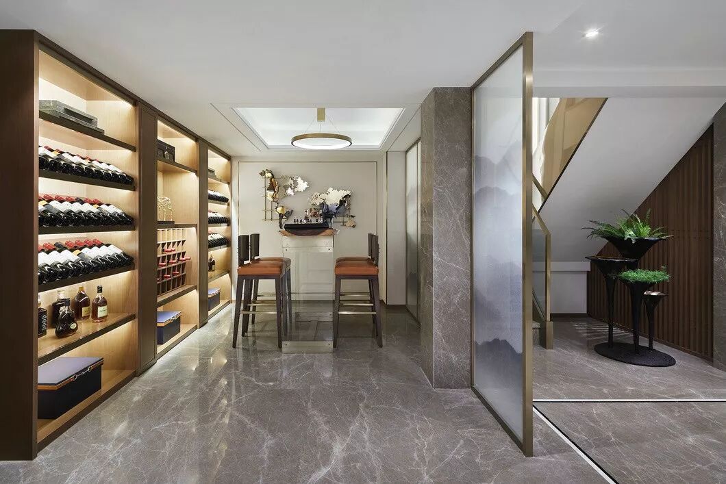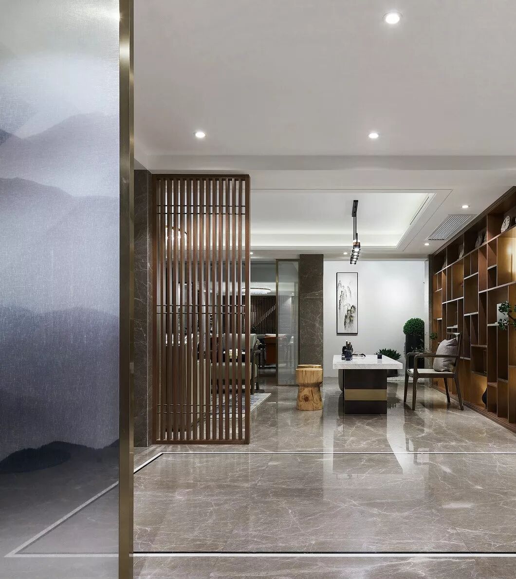 设计师在院墅样板房设计中,将杭州的文脉诗韵在现代新中式的雕琢细节中娓娓道来——山茶清茗,烟岚迷蒙,细雨点染出水乡的圈圈涟漪之美,这是杭州城在人们记忆深处的样子,也是设计在这个现代简美空间中演绎出的东方情调。