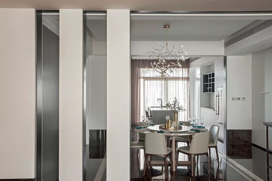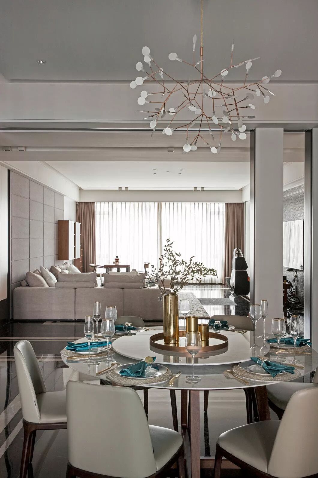 从客厅过渡到餐厅,一股迷人的轻奢格调缓缓延展。