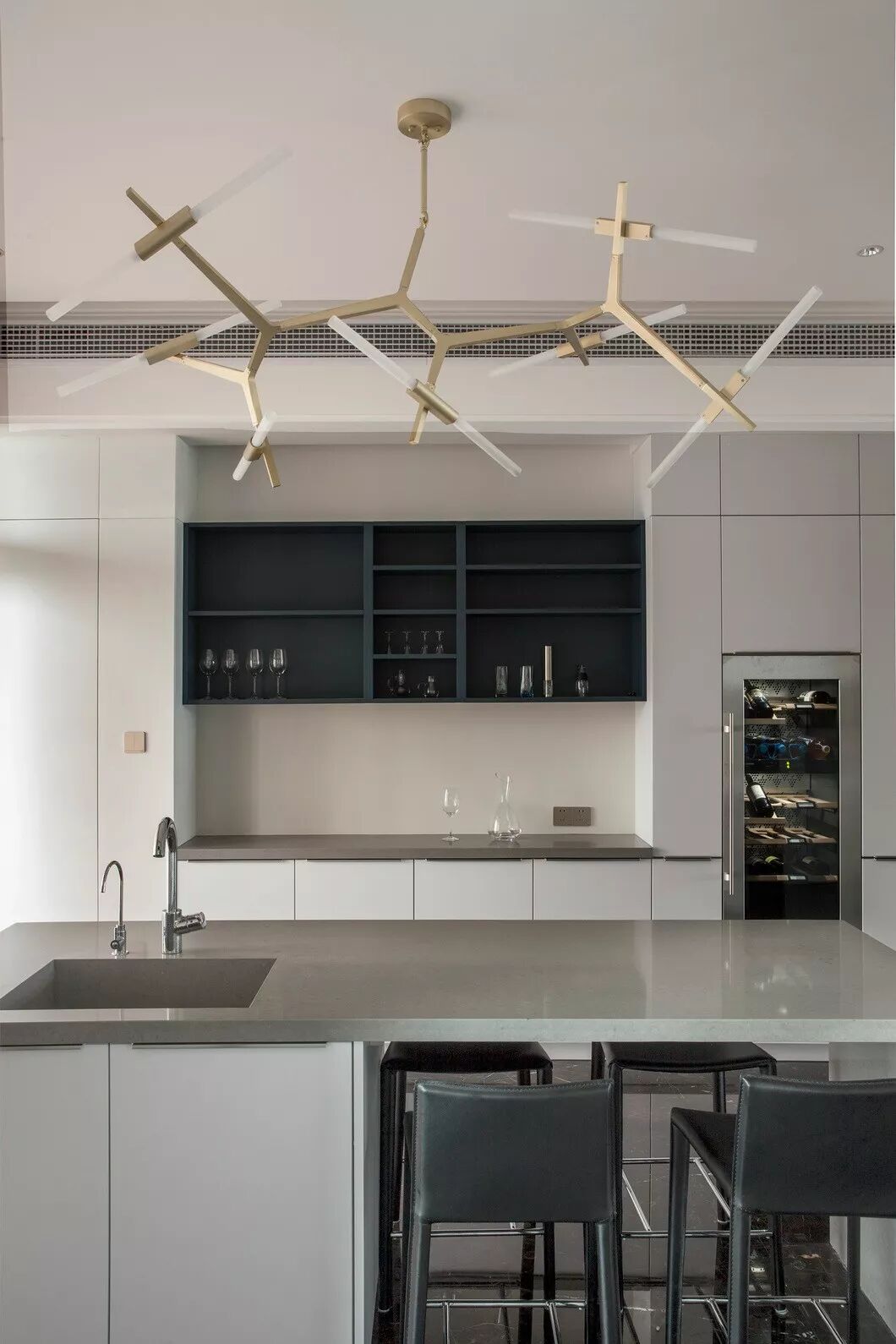 所以设计师专门打造了一个西餐区,用白色柜体搭配富有光泽的大理石墙面,让空间层次感呼之欲出,上演极致优雅生活。
