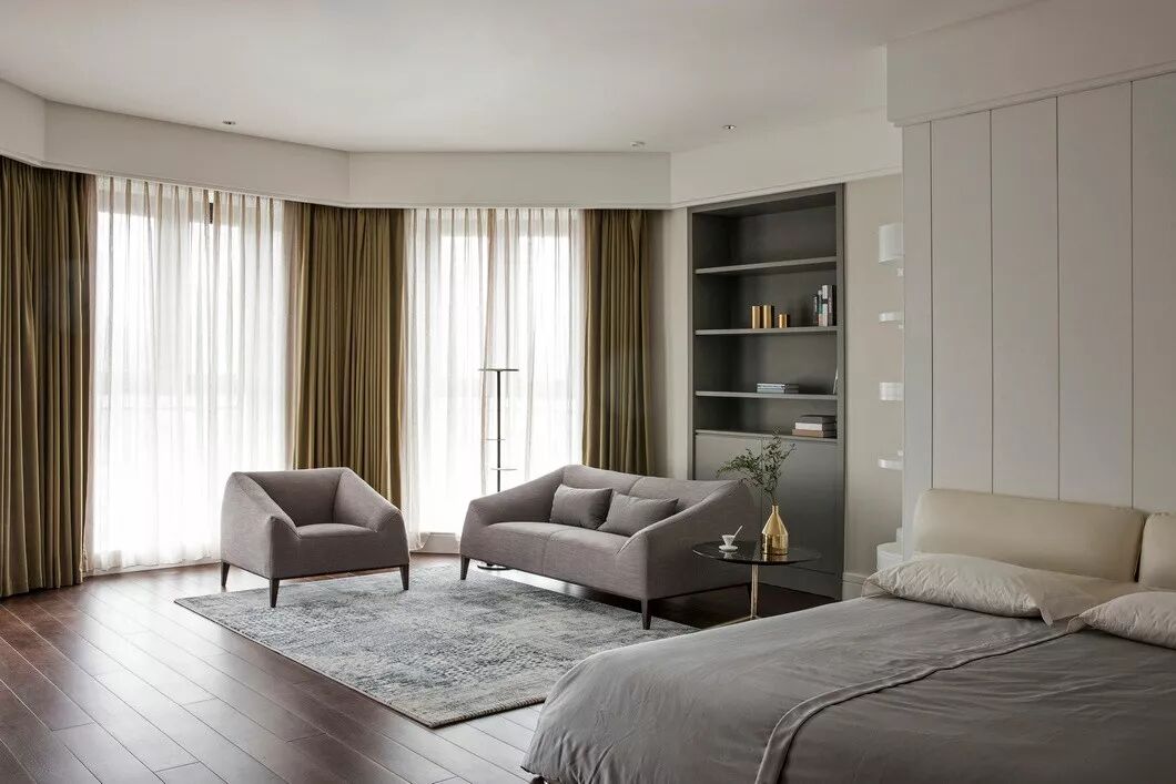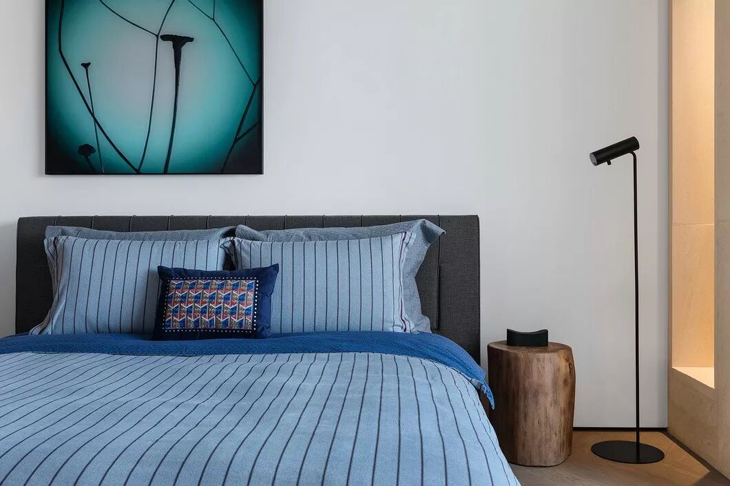 过道尽头的两侧卧室,用温暖舒适的色调与干净利落的线条,糅合成一种非常纯粹的空间语汇,帮助主人找到忠于自我的表达。