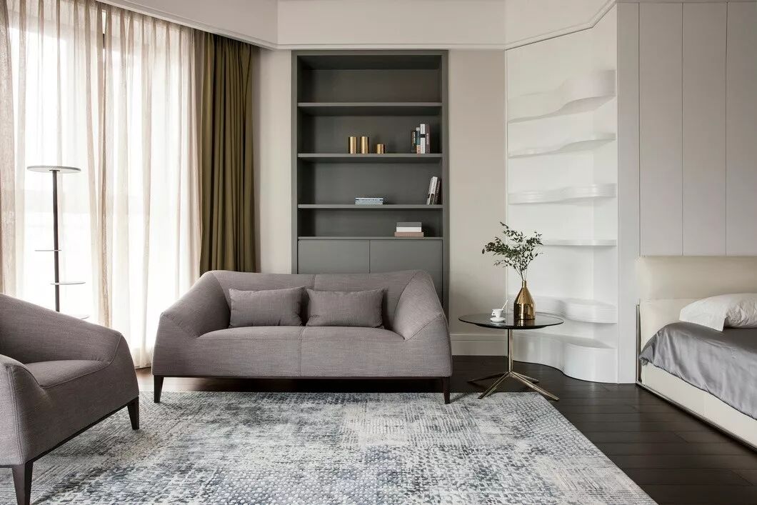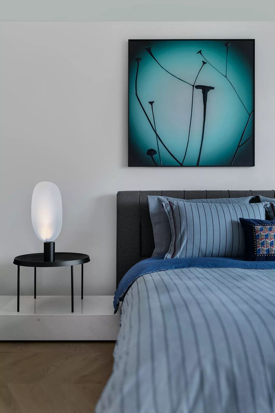 整个家多以大色块呈现出立体效果,造型简洁、线条清晰,搭配同样现代极简的家具陈设,将浓浓的艺术气息渗入到空间中。