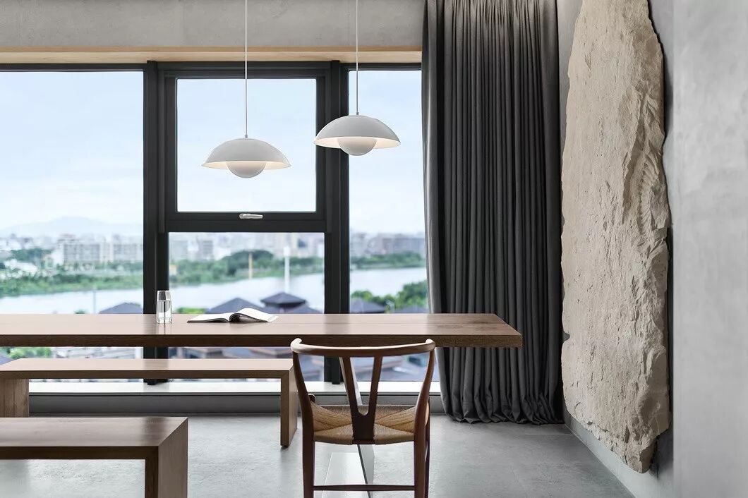 餐桌一侧靠近落地窗,并引入充足的自然光线和开阔的美景,让人即使身处室内,也能尽享明朗舒怀。