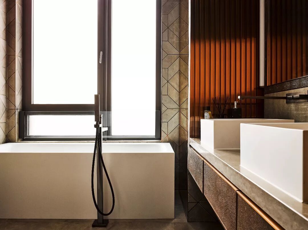 基于对细节的苛求,凹凸有序的古铜格栅形成过渡,让每一面都超凡脱俗。