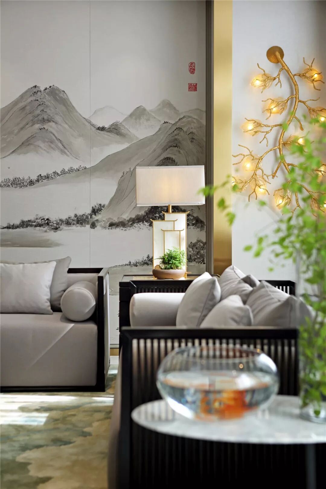 “山峦”“秀水”“苍翠”“枯枝”不同的元素在空间中随意切换,将功能布置与人文气质有机的结合在一起,营造出“画中有景,景中有境”的丰富层次,给人以视觉上的惊喜。