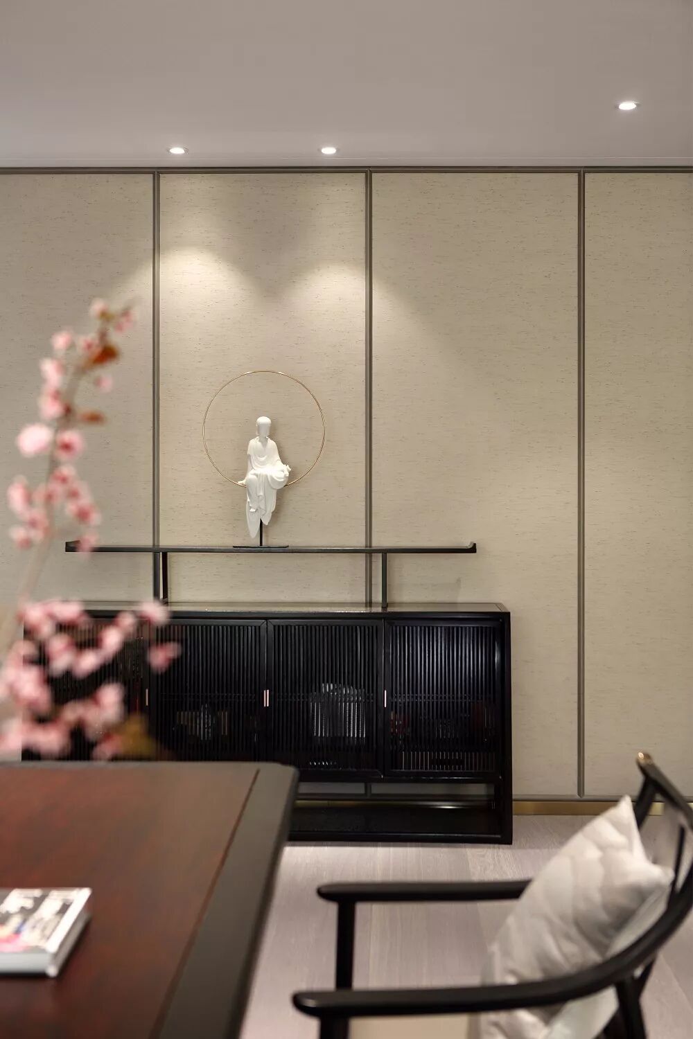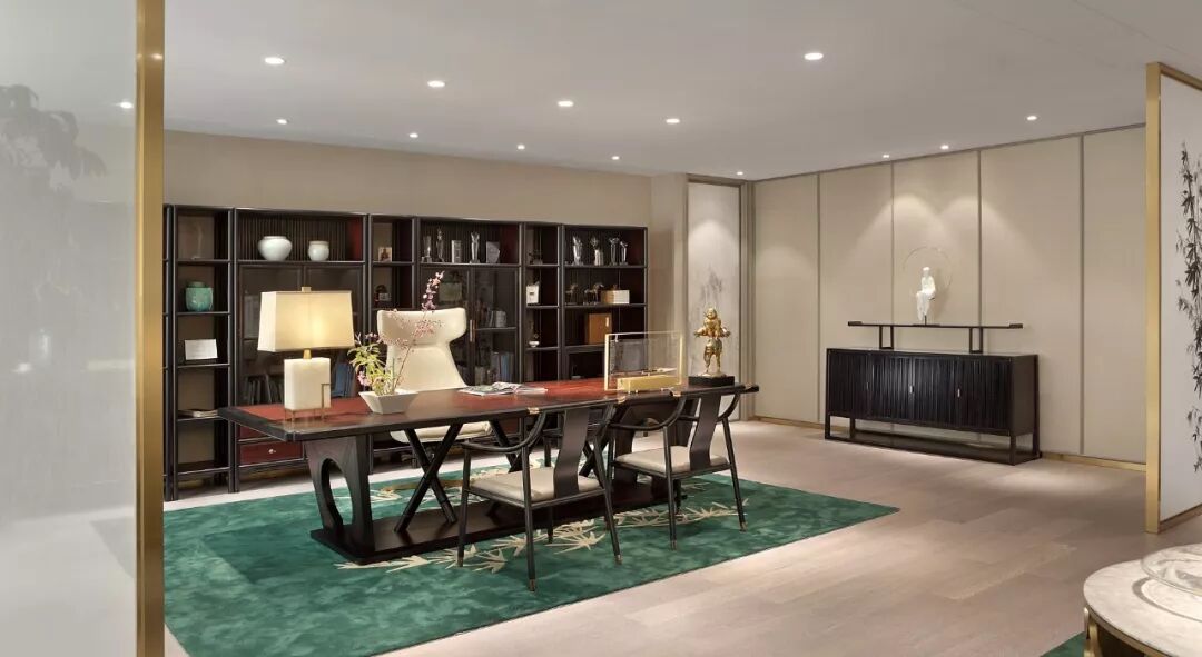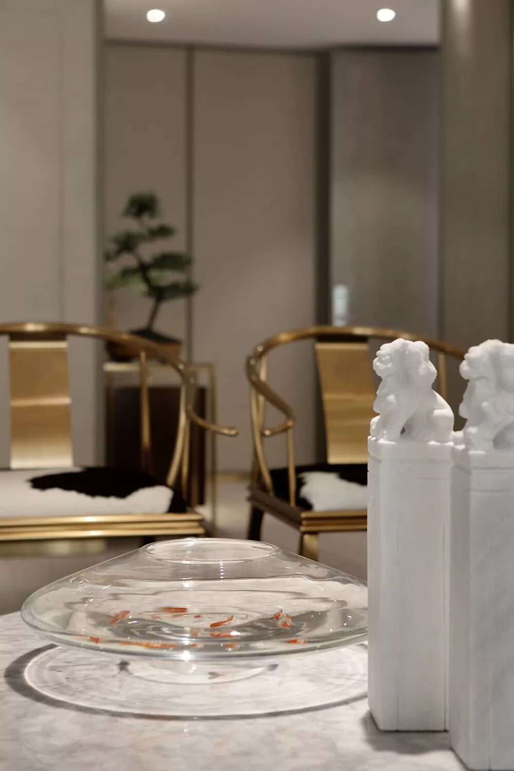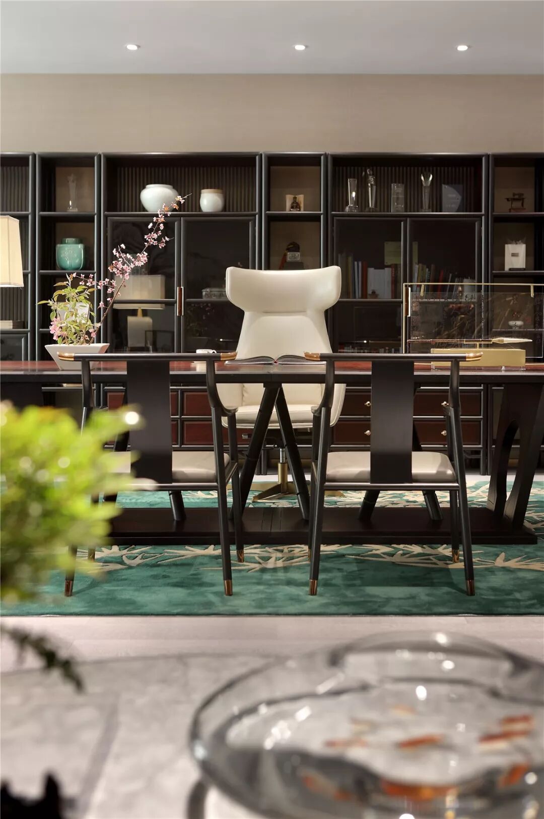 在办公室的设计上,设计上并不是一味的追求办公与洽谈的功能性,而是在寻求一场艺术与文化交织的匠心之旅, 凋刻的工艺、以中式展现中式的雅致;光线透彻,形态各异,流畅的线条勾勒出独特的空间感,俐落的棱角线条无一不彰显中式古典的大气之美。