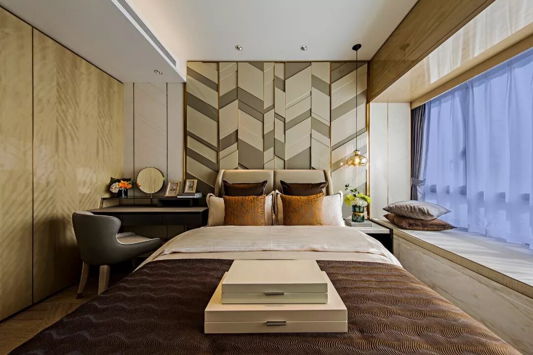 从钻石中提炼出的设计元素亦延续到整个空间铺陈中,包括卧室木地板的菱形铺装方式、床头背景墙的特色几何装饰、墙面镜子的几何刻花图案,以及卫生间的特色马赛克搭配等,共同成就了奢雅却不浮华的家居场景体验。