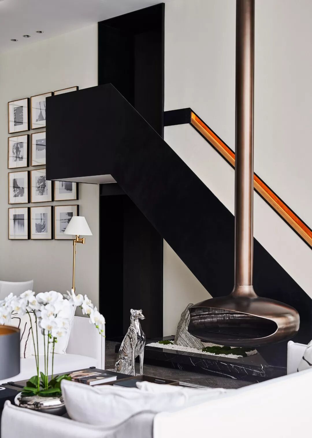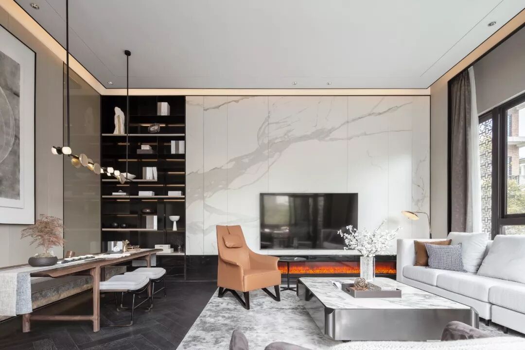 现代简洁的界面内,有壁炉和茶台的置入,空间整体交织着现代的雅致和低调的尊贵。