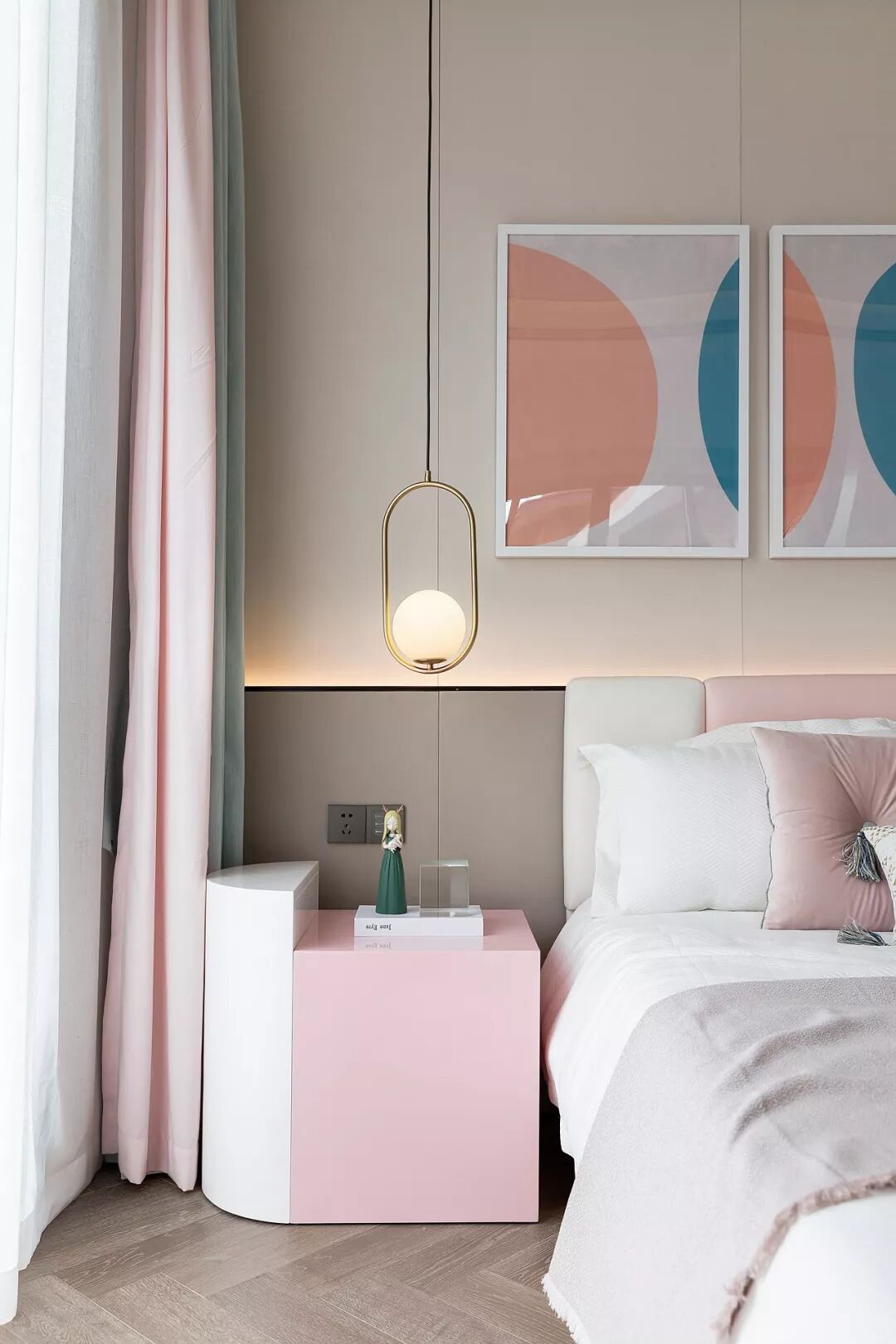 女孩房选用橡皮粉和青草绿为主色调,与户外景观相映成趣,在自然中融入时尚浪漫感。