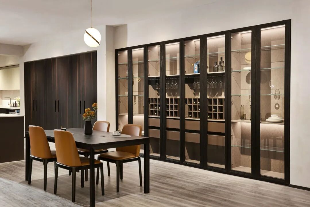 高级感十足的透明玻璃门,采用入墙式设计让柜体与整体空间相融一体,呈现独有的生活美学和空间理念。