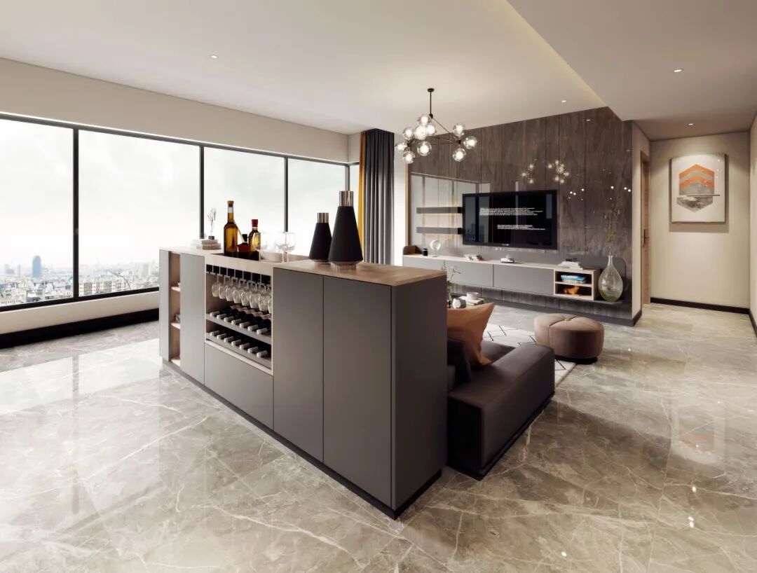 隔断型酒柜,可作为客厅与餐厅的边界,也起到空间承接的作用,让两个空间功能融合一处。柜体功能上再结合抽屉、半开放柜等设计,即可达到便捷使用、轻松收纳的效果。
