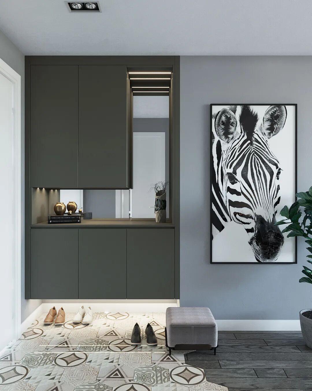 进门换鞋,所以鞋柜距离入户门肯定是越近越方便,