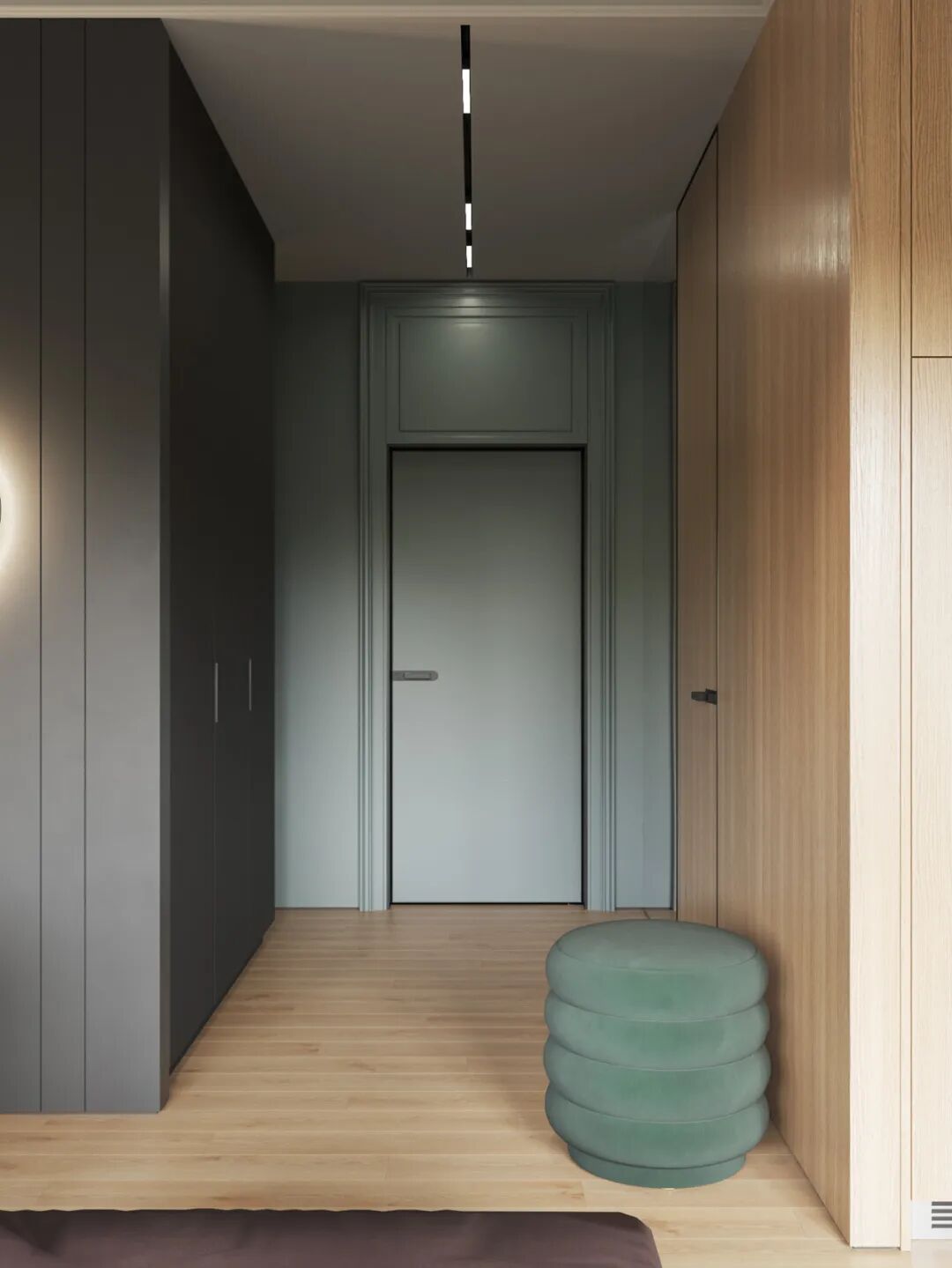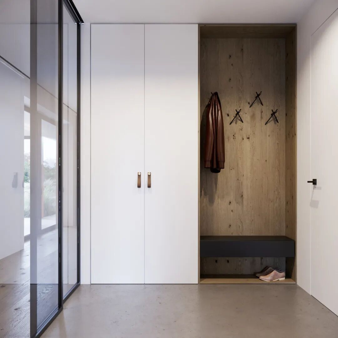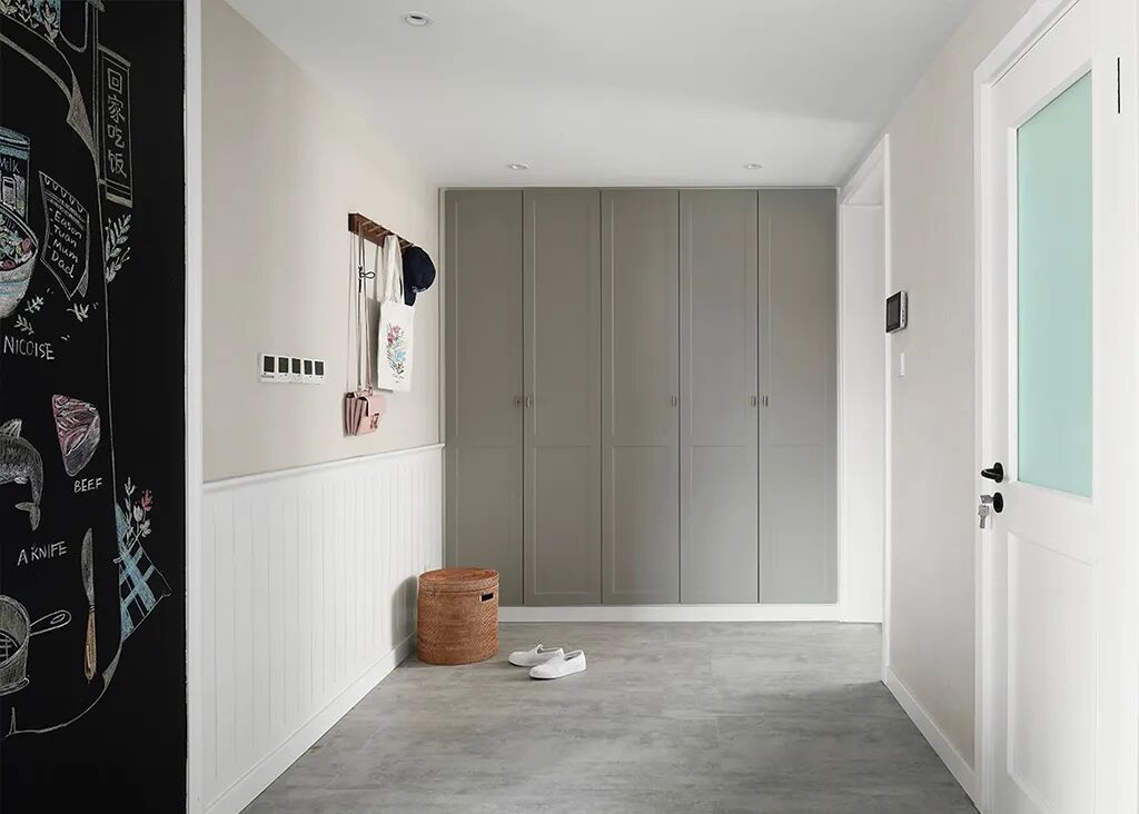 走廊型也可以把衣帽钩设置到鞋柜对面的墙上。