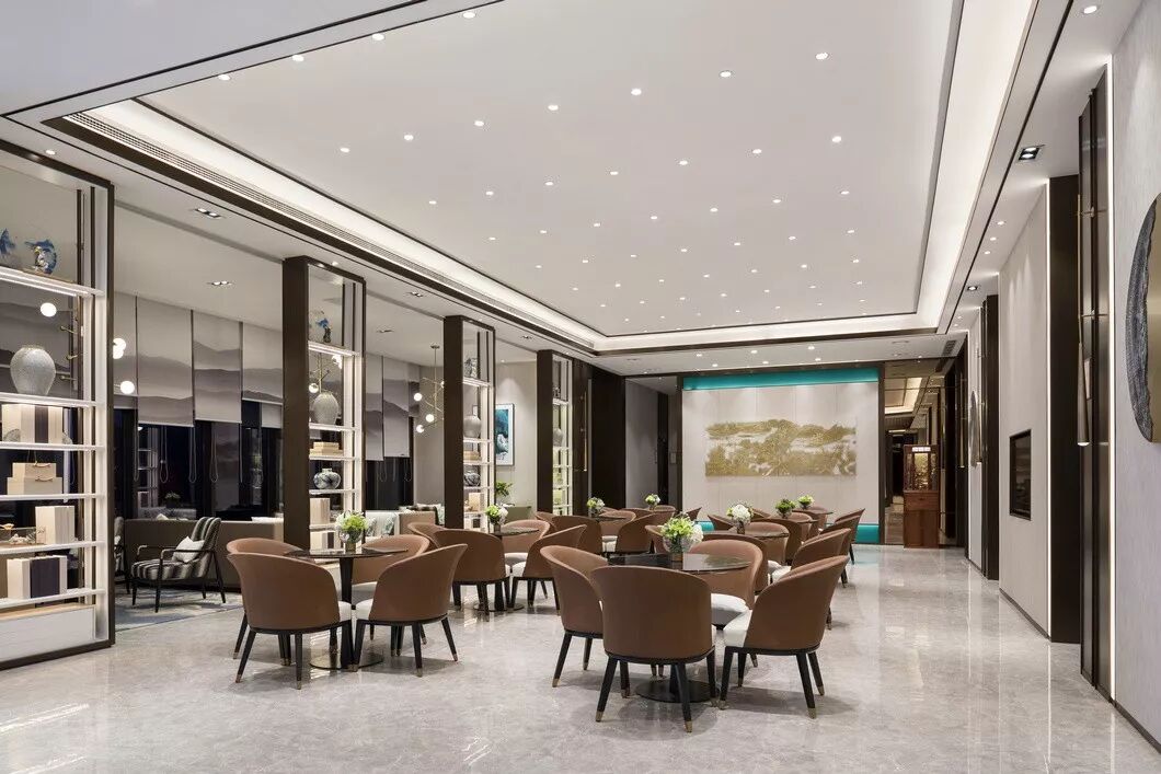 本案空间以“涟漪”为设计原点,风过涟漪纹縠细,涟漪的轻灵、悠然、诗意绵延于空间,营造出一种自然空灵的场所精神。