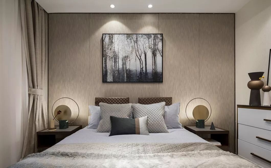 整体空间简约时尚,不事雕琢,素净的背景色调结合点状灯光,奠定了空间轻柔优雅的气质,设计师通过色彩的凝练呈现和细节的装点,丰富空间的感官要素与意涵。家具的优雅弧度中,凝结着一种自在而温暖的感受。