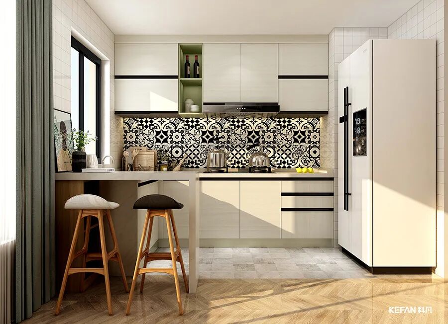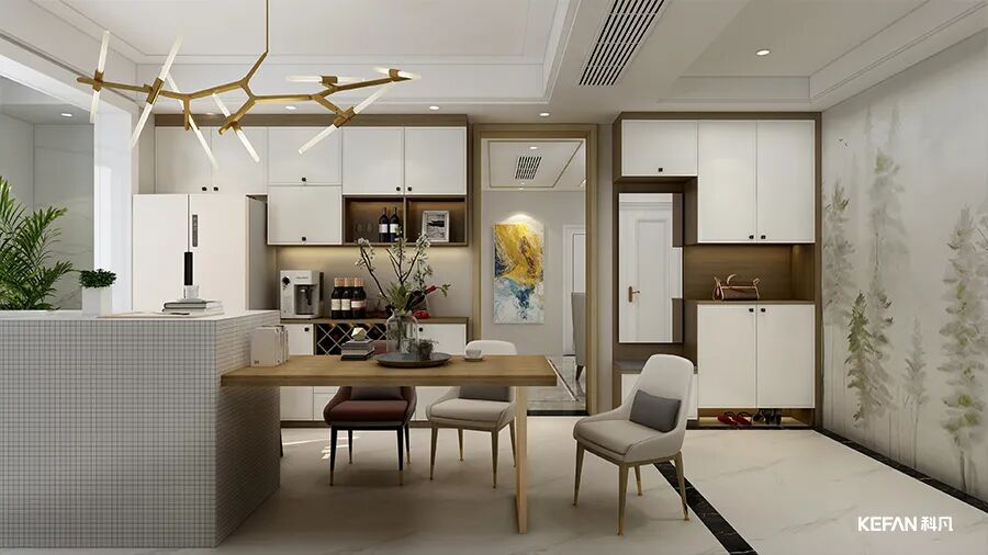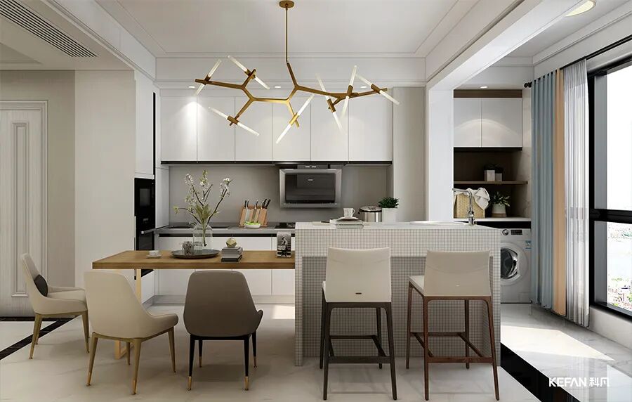 小小吧台和橱台相连接,节省的不仅仅是空间,更是厨房“升级”的体现,便利又美观。侧边的采光区,减少了墙壁的束缚,扩展视野,使空间变得通透。