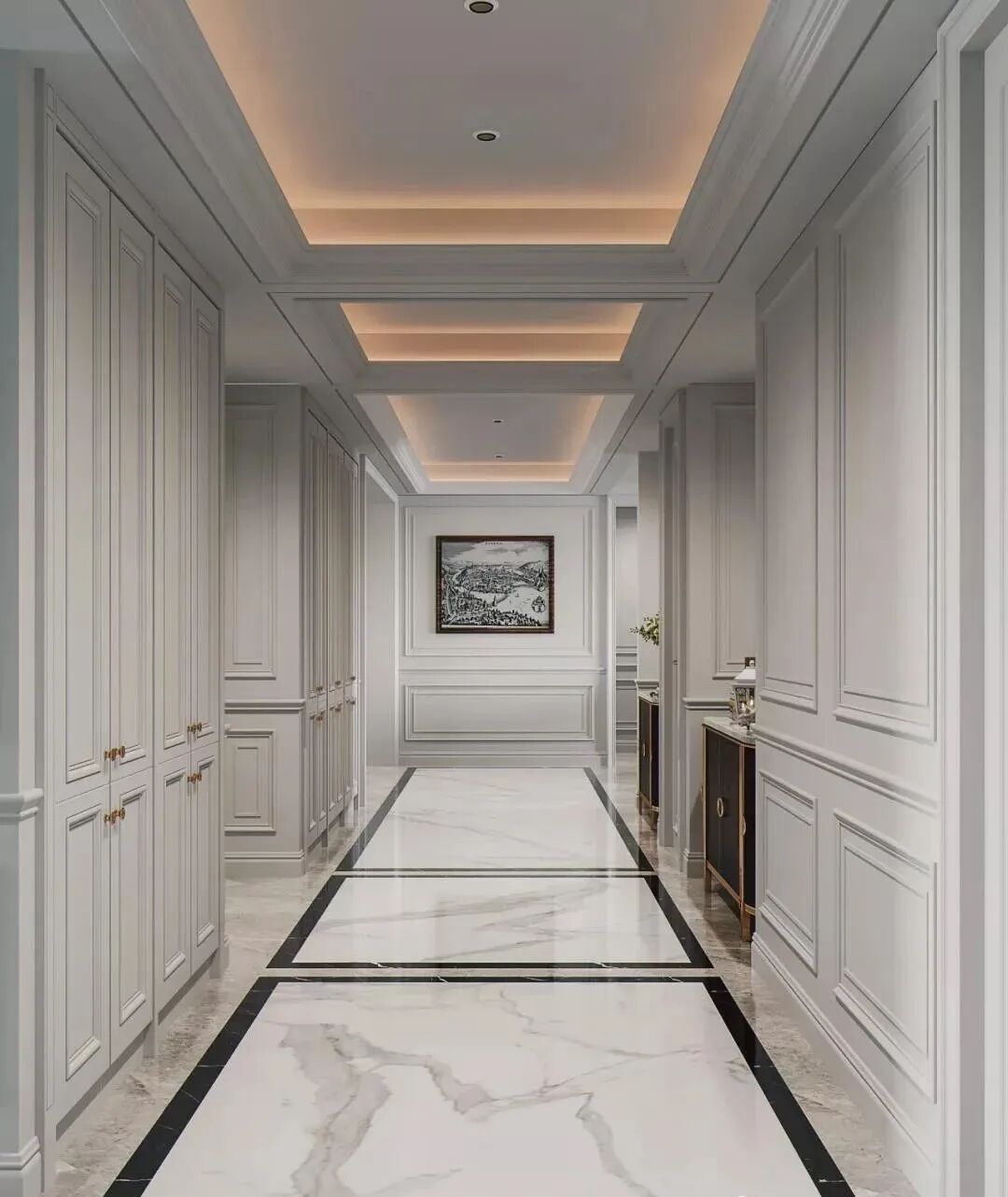 在一些比较注重档次的别墅和大宅装修中,护墙板的使用可以让整个空间显得端庄典雅,奢华高贵,大大提升空间的逼格。