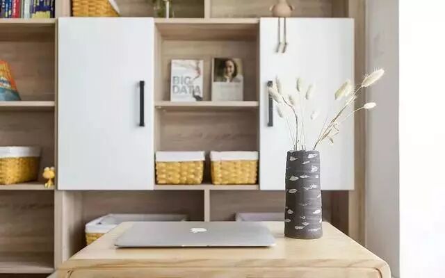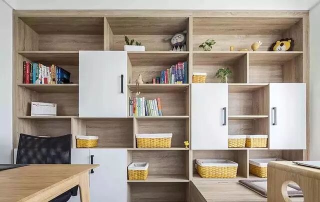 书房比较大,书架占满了整面墙,设计了一张榻榻米的床,底下可以做收纳,上面放上棉被,可以当做临时客房和休息房,窗户的采光性非常好,整个书房显得明亮宽敞。