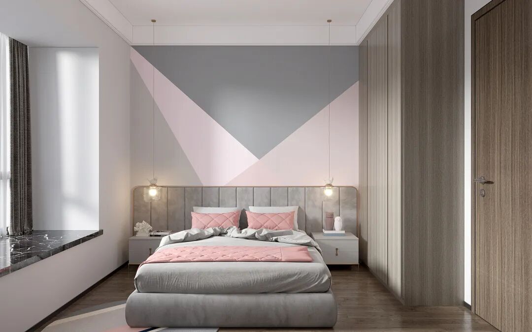 梦幻又少女风格的儿童房,温馨又可人。卧室的设计一样走简约风格,衣柜一门置顶十分简约,,与金属门框碰撞出轻奢的火花,灰色调并且线条清晰,展现出时尚且现代的设计风格,吊灯是一个点缀点,为卧室添加了不少高级感。