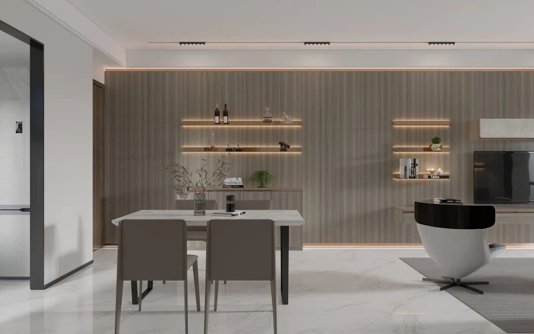 简约的用餐厅纯粹且高级,简单的餐桌椅与简洁的柜体,干净的视觉氛围下用餐都觉得十分舒适。