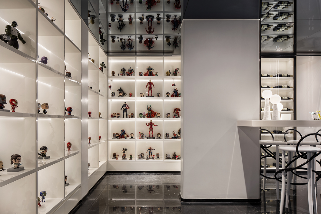 琳琅满目的手办整整齐齐地摆放在柜子里
