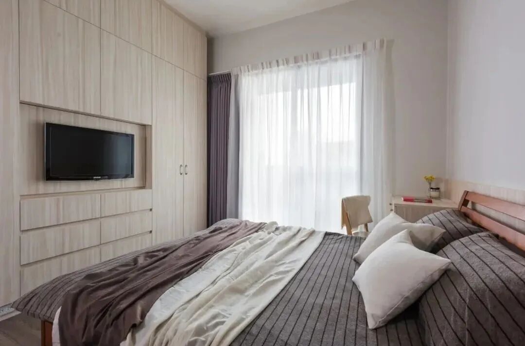 衣柜旁边正好是卧室门,这样的空间利用也非常适合小卧室。