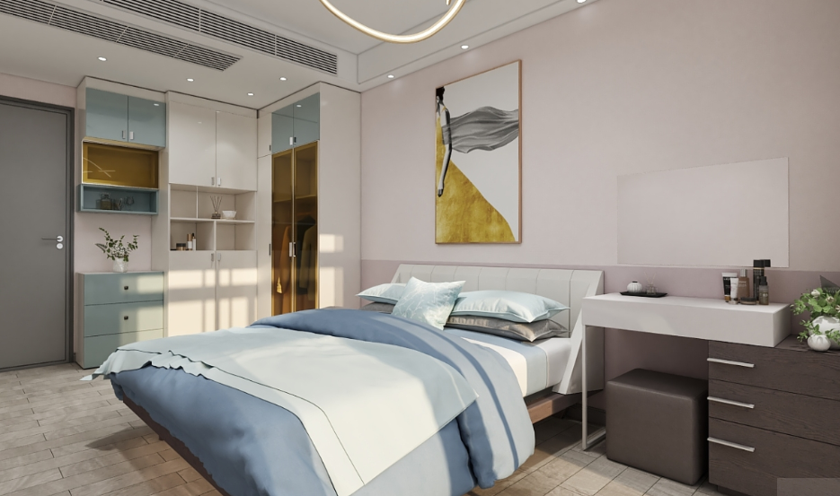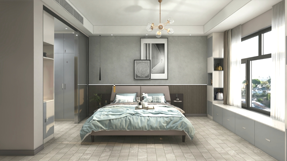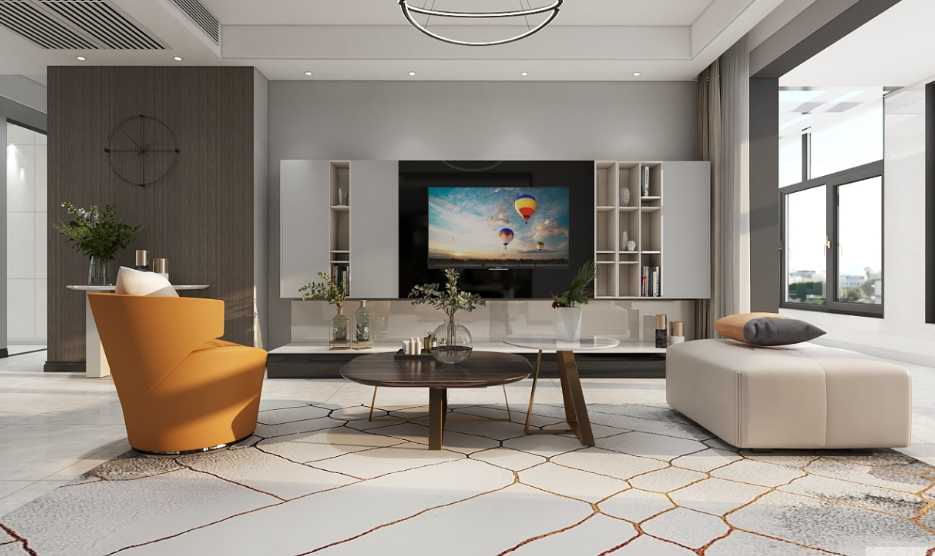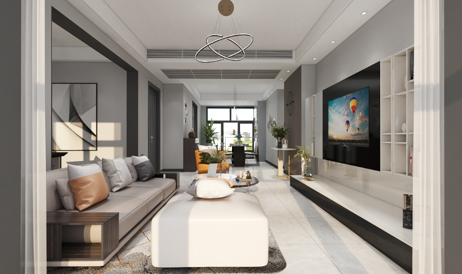 本案为绿城163平方四室户型,风格定位为意式轻奢+极简,在户型拆改方面,客厅改动比较大。
