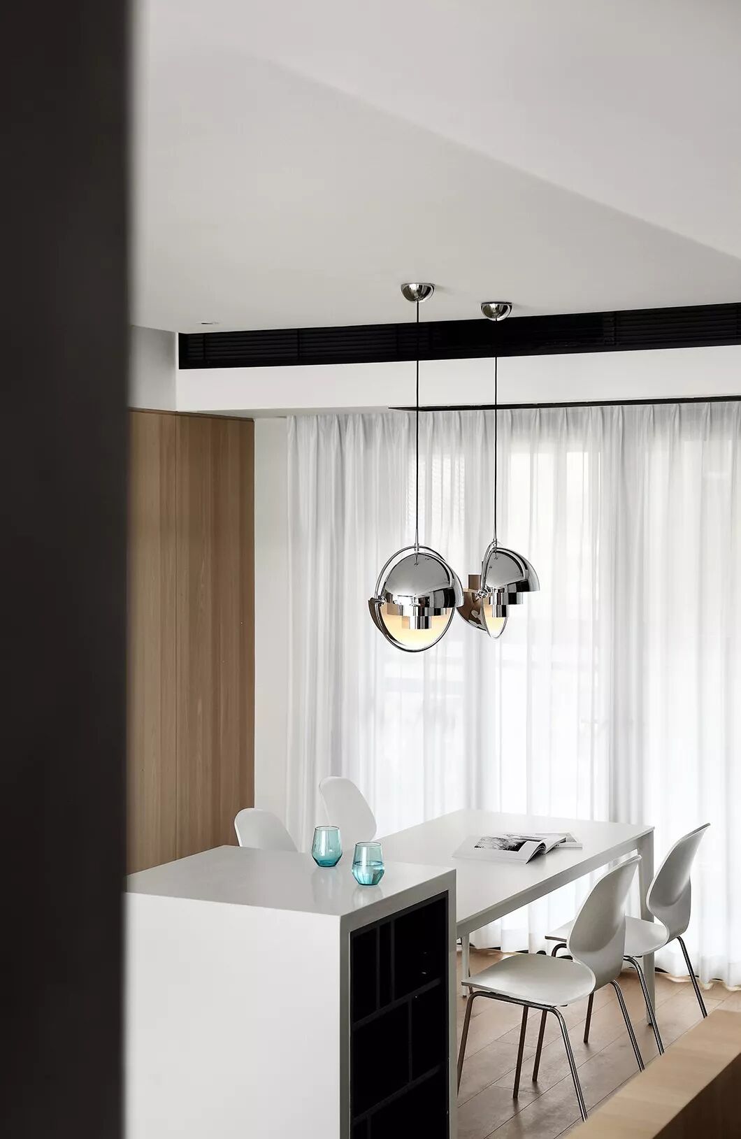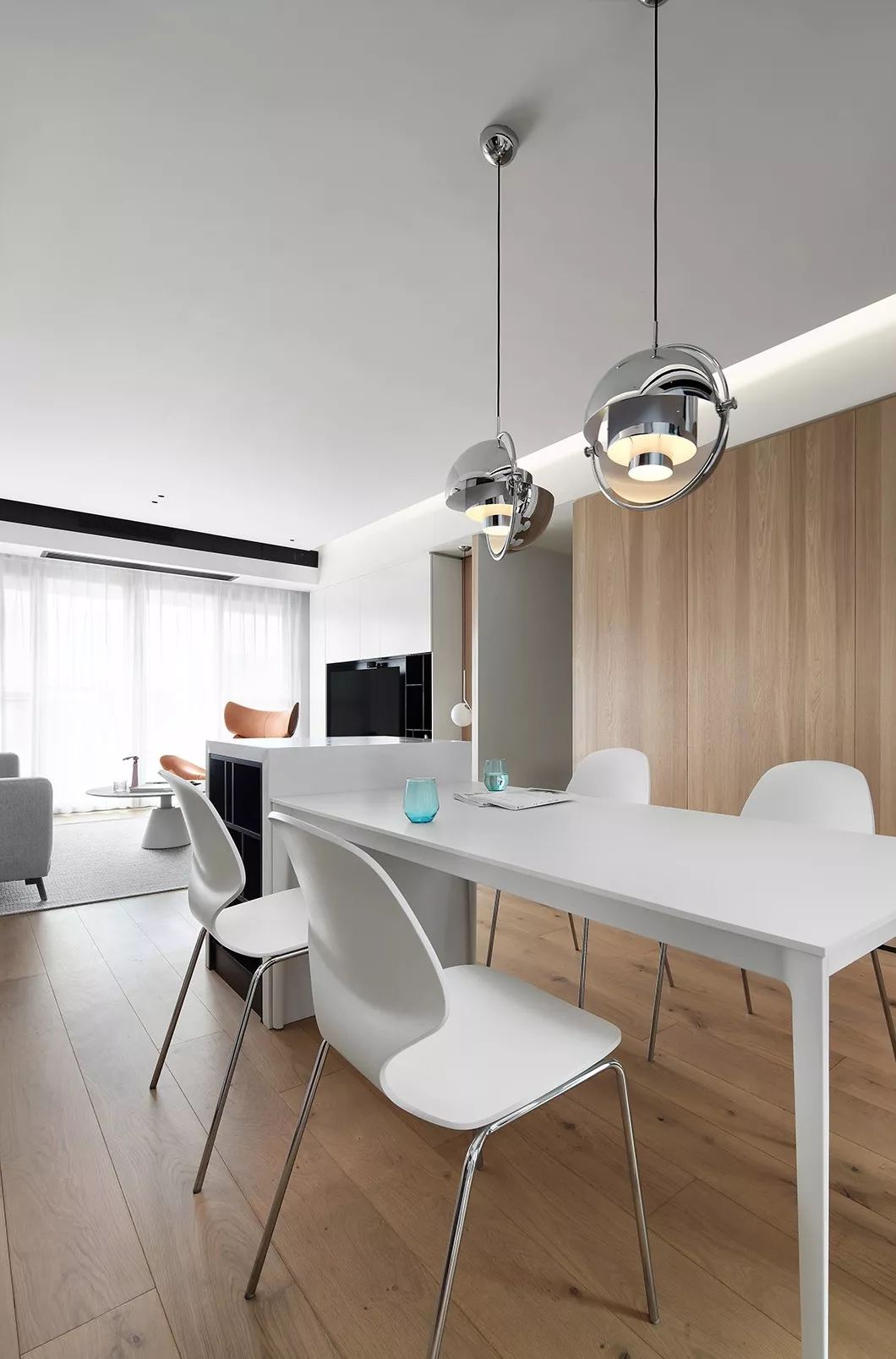 餐厅区为居家生活的重心,白色餐桌配白色餐椅,超简单的搭配却有着回归真我的触感;