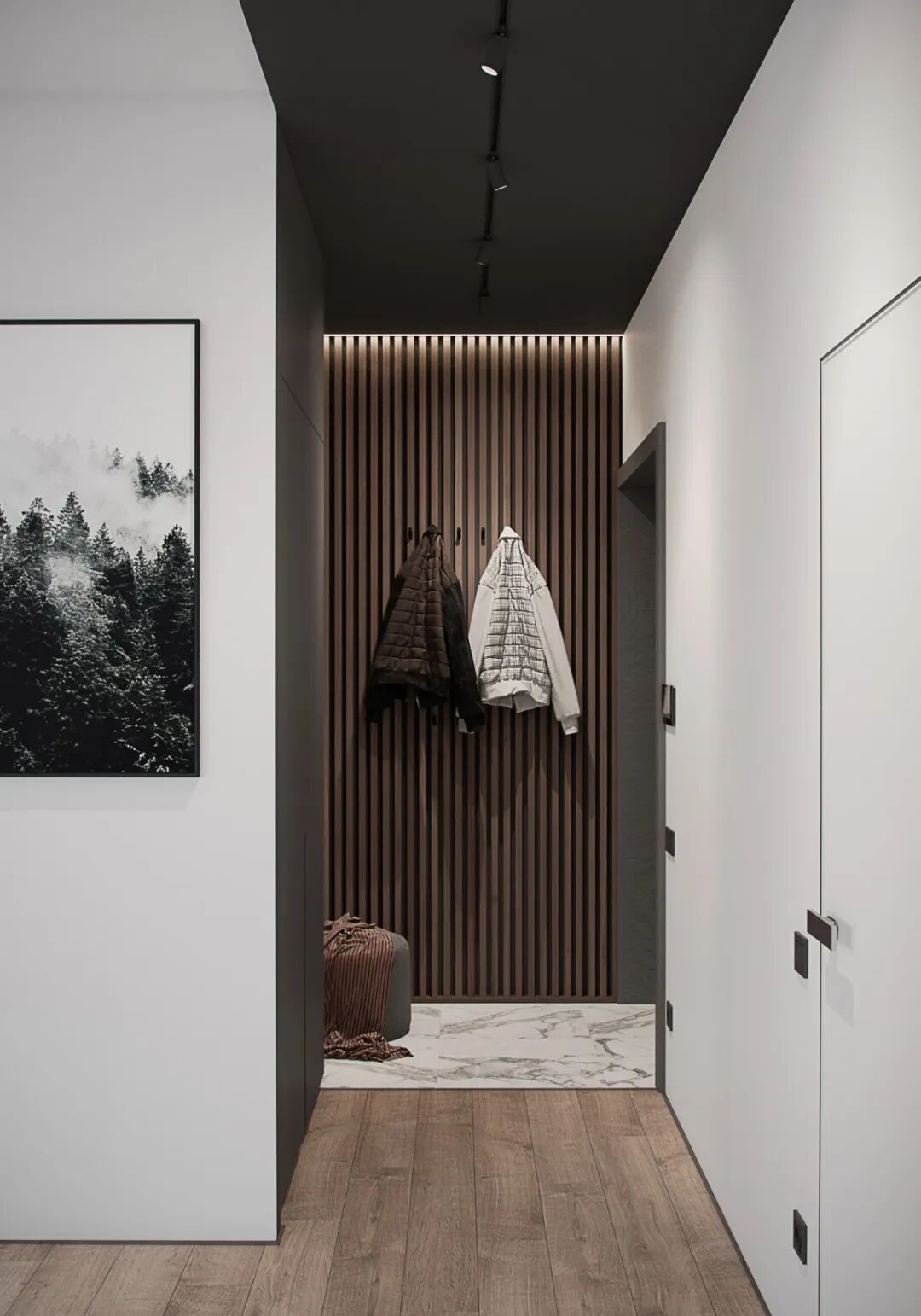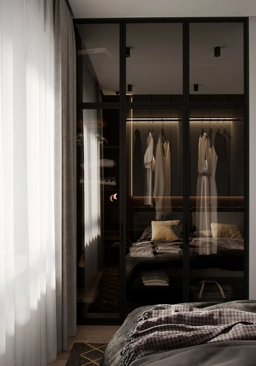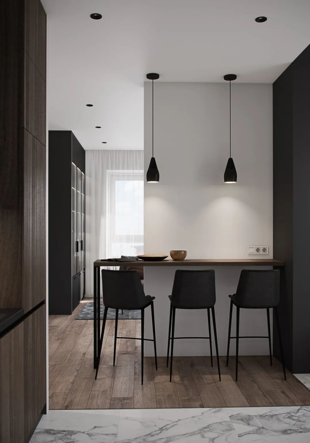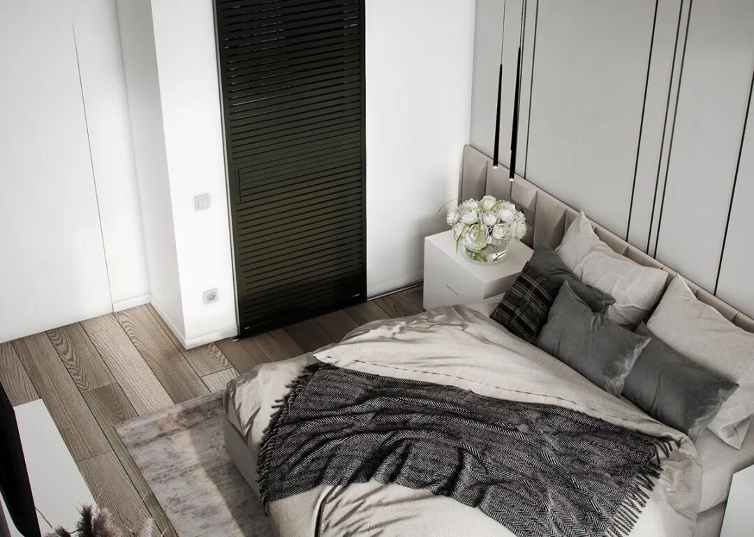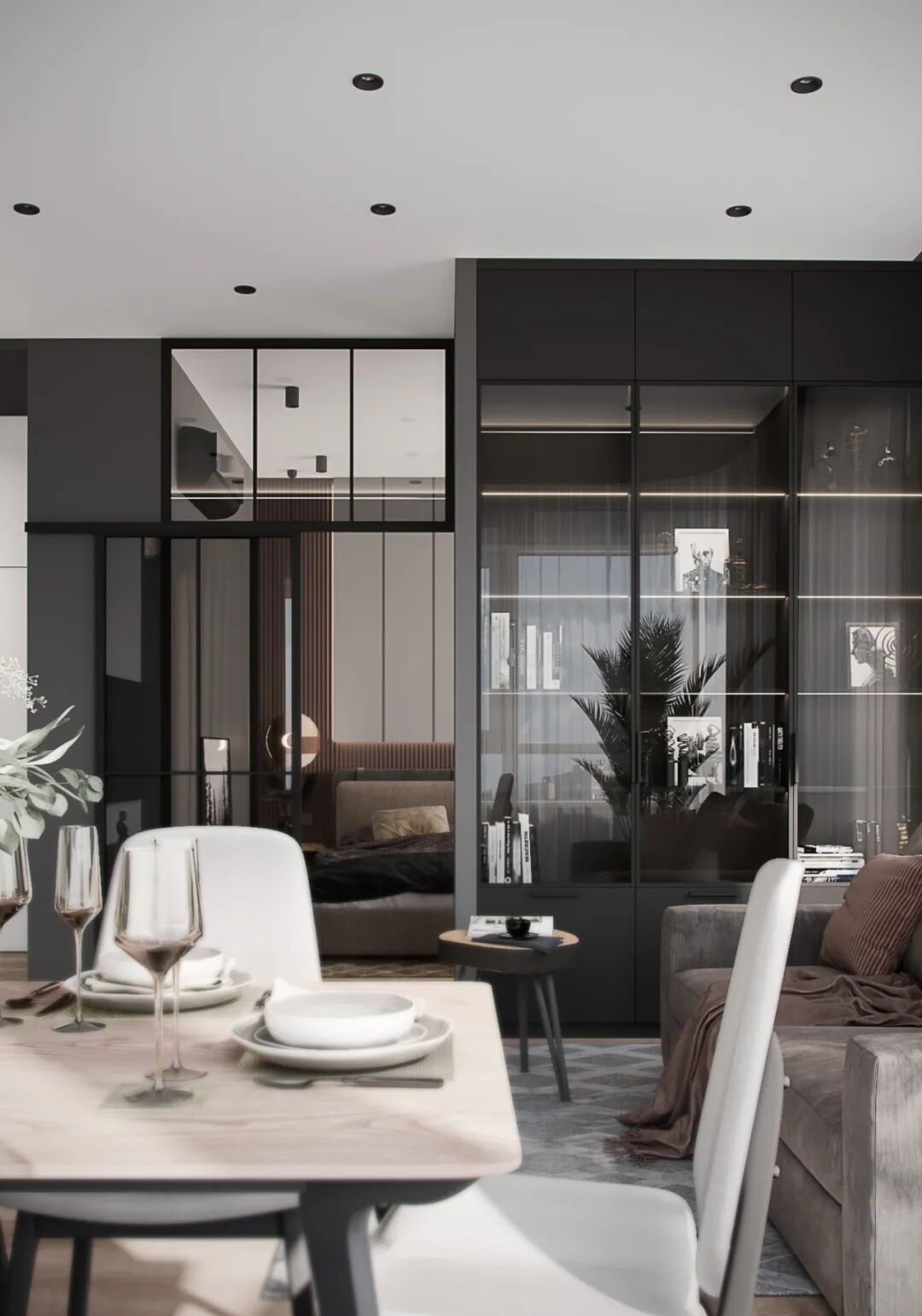 这套58㎡公寓的设计将吸引线条清晰,色彩灰暗的爱好者,空间的布局是经过深思熟虑的,所以住起来非常的方便,虽然面积不是很大,但是在里面有一个宽敞的卧室,起居室和更衣室。