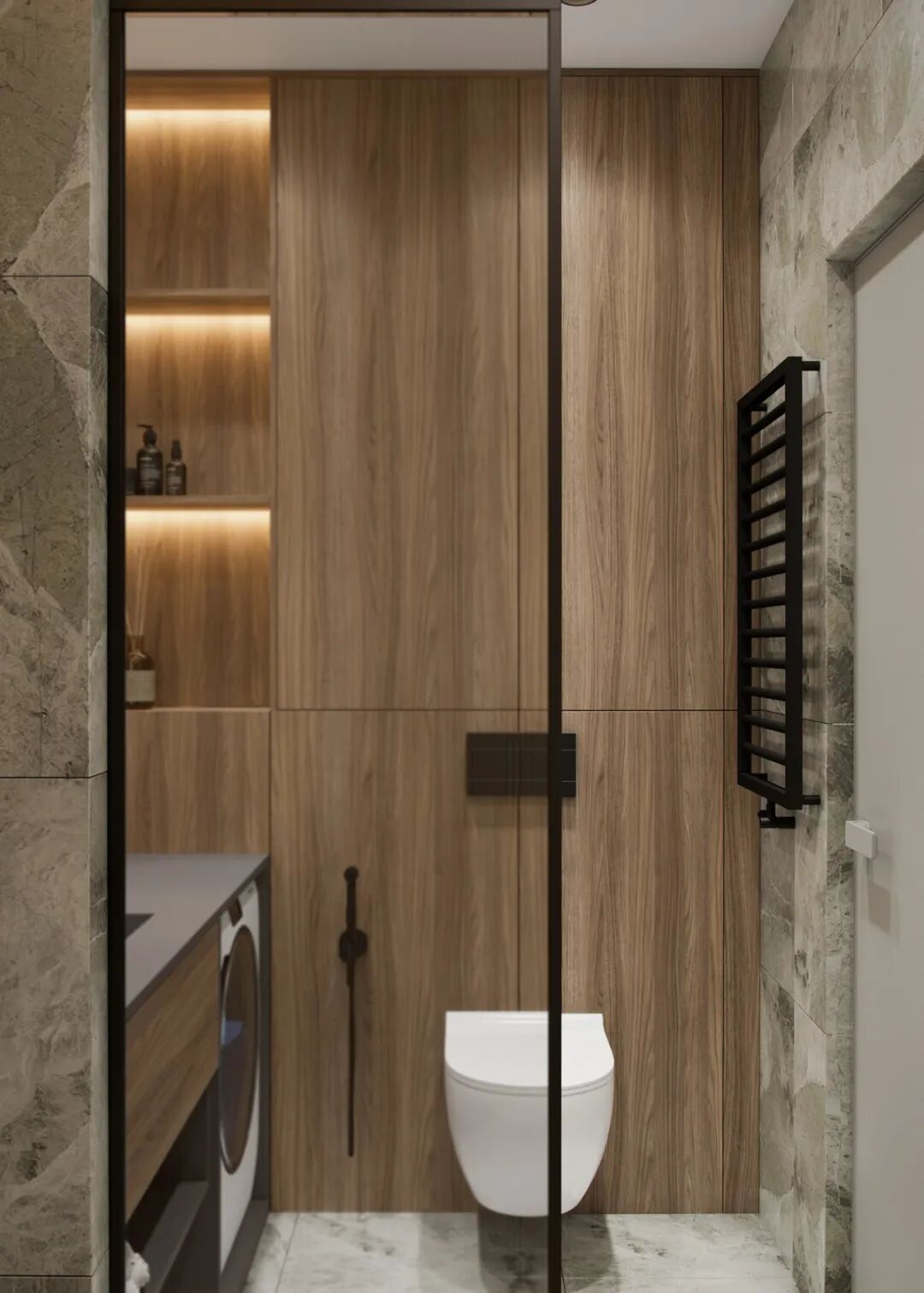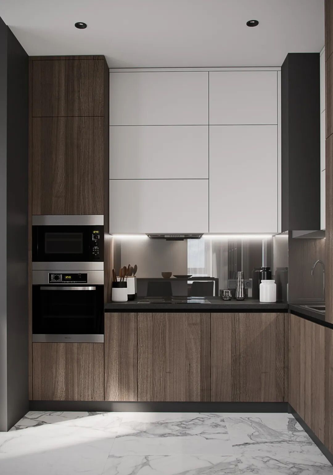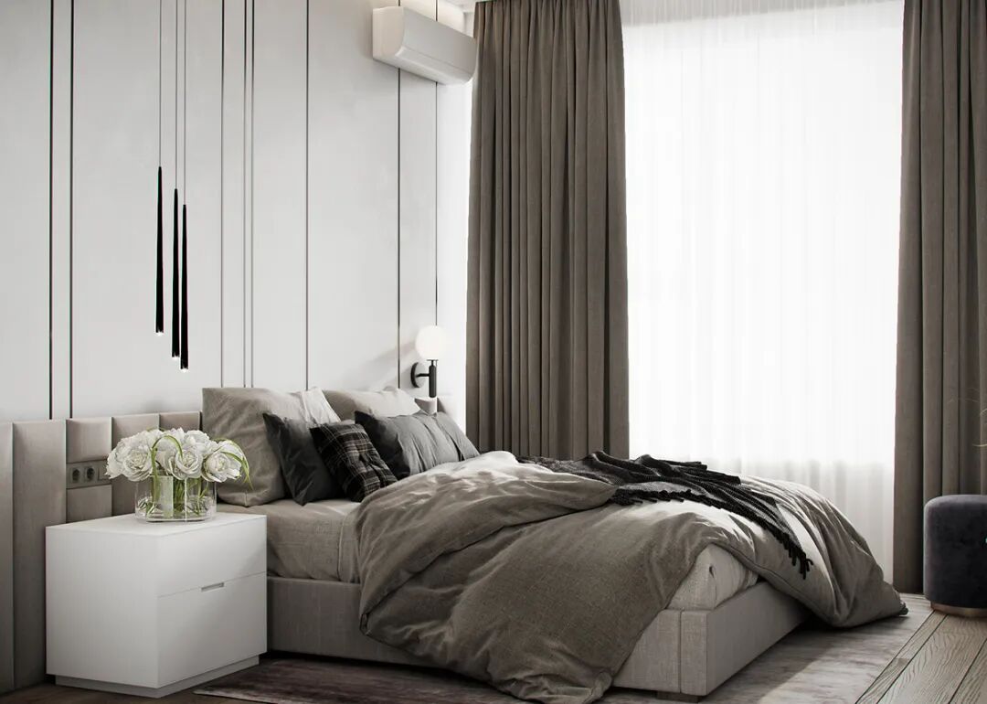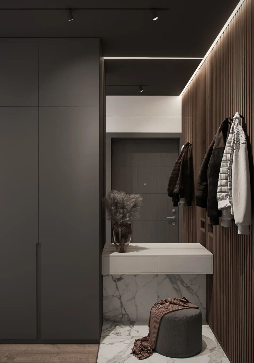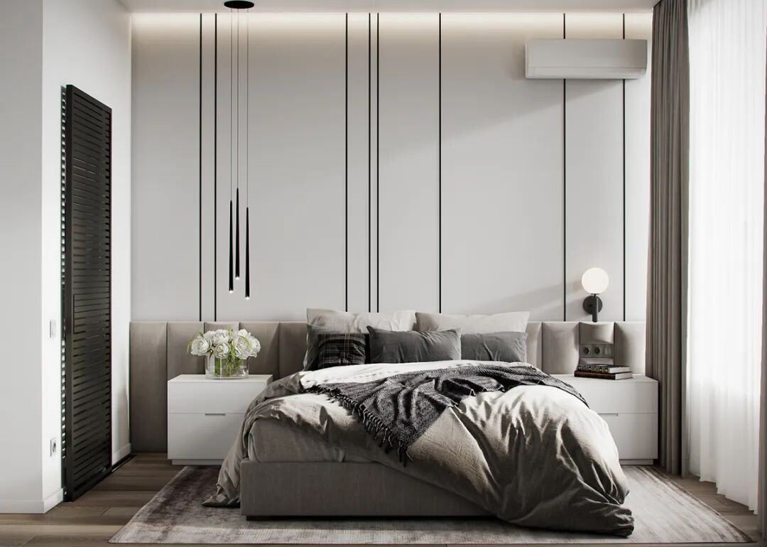 这套58㎡公寓的设计将吸引线条清晰,色彩灰暗的爱好者,空间的布局是经过深思熟虑的,所以住起来非常的方便,虽然面积不是很大,但是在里面有一个宽敞的卧室,起居室和更衣室。