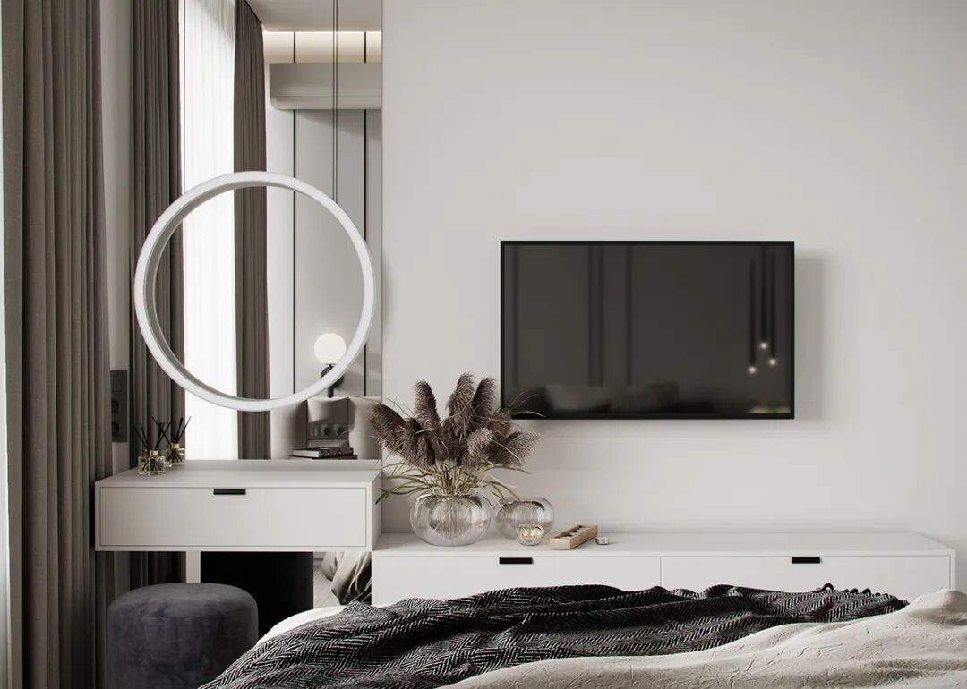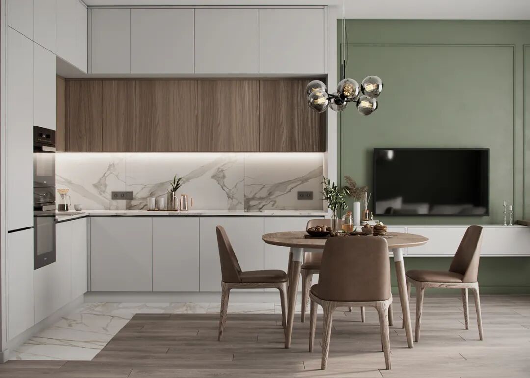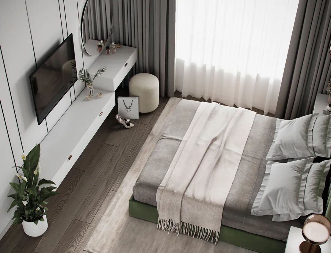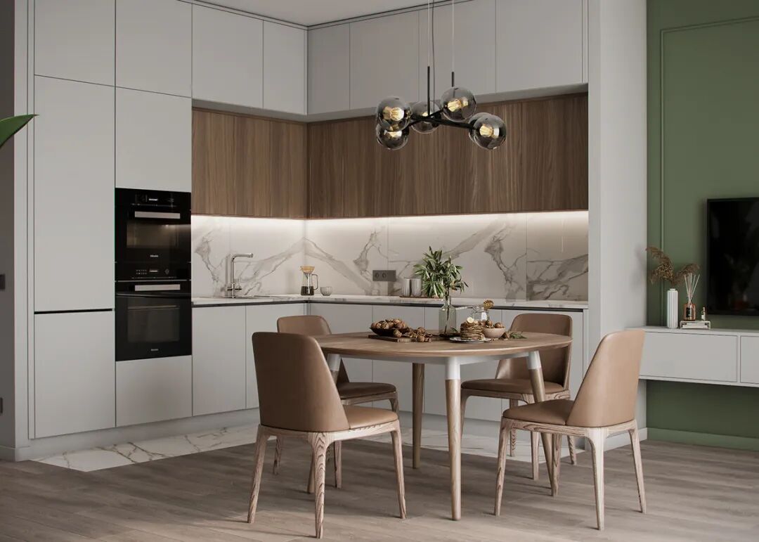 72㎡三居室公寓的设计项目,整个空间以现代简约风格为基础,采用时尚的灰色、象牙色结合简洁大方的空间,营造出一个舒适自然的空间感。4人的饭桌带软椅,