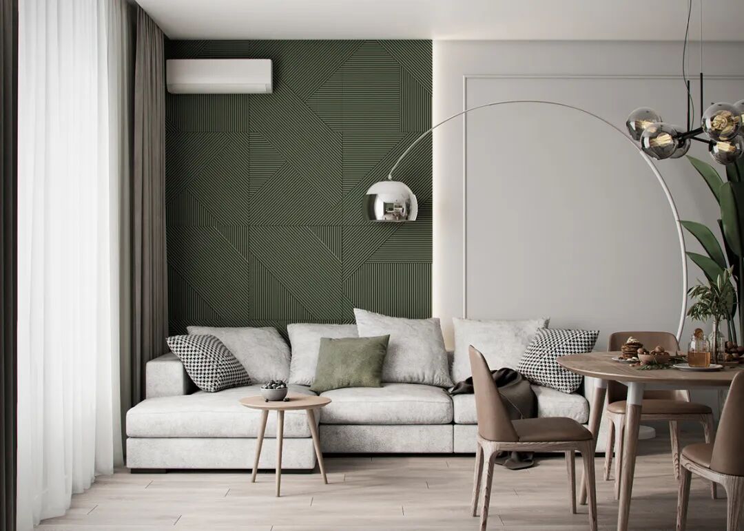 94.5㎡公寓的设计,在这个室内,设计师使用了由绿色,米色和黑色阴影组成的配色方案,配合原木色的木地板,清新而舒适的视觉效果有种清凉的舒爽感,可以让你度过休闲时光。